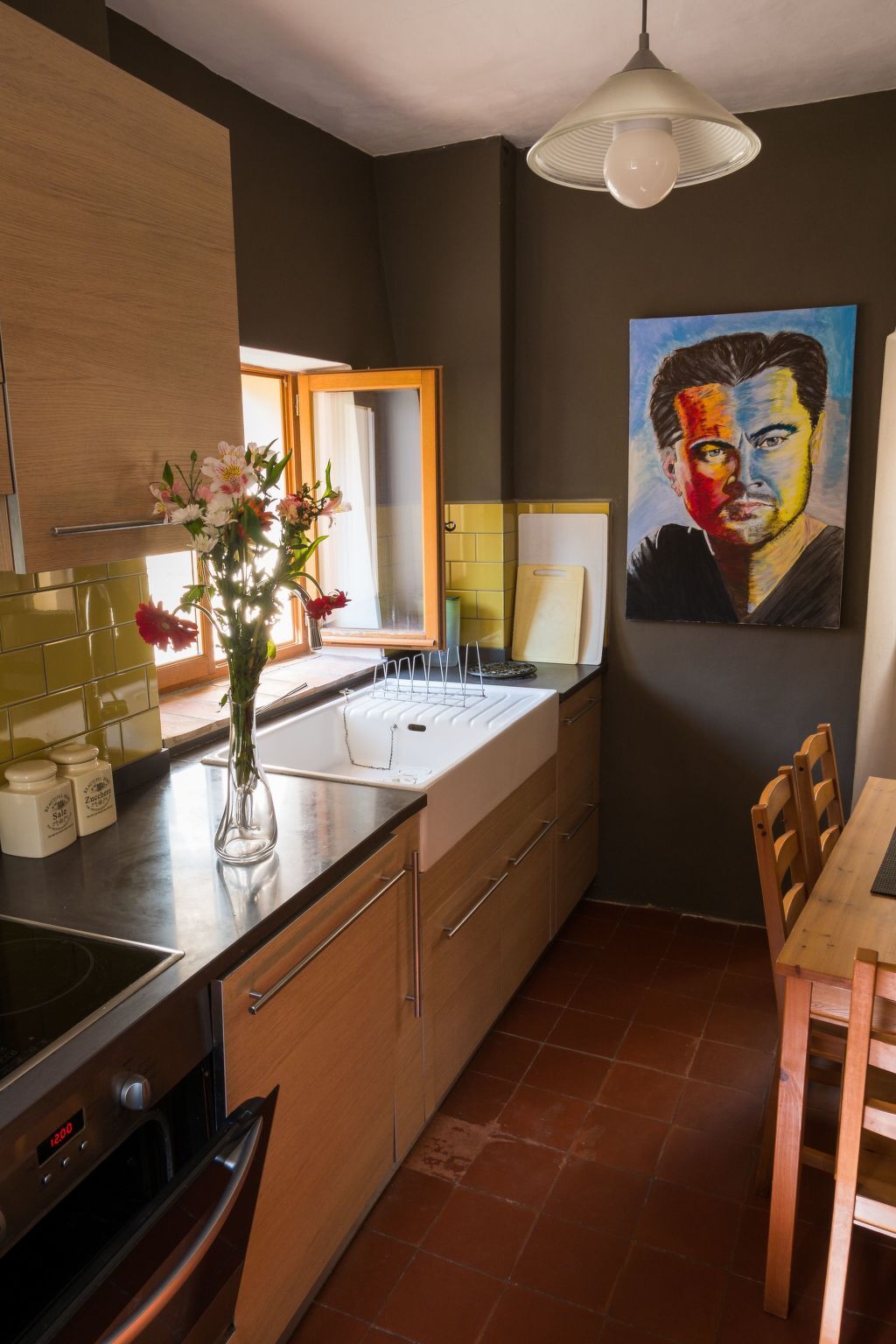 La cuisine combine confort moderne et efficacité, y compris tous les appareils électroménagers nécessaires et une petite table à manger.