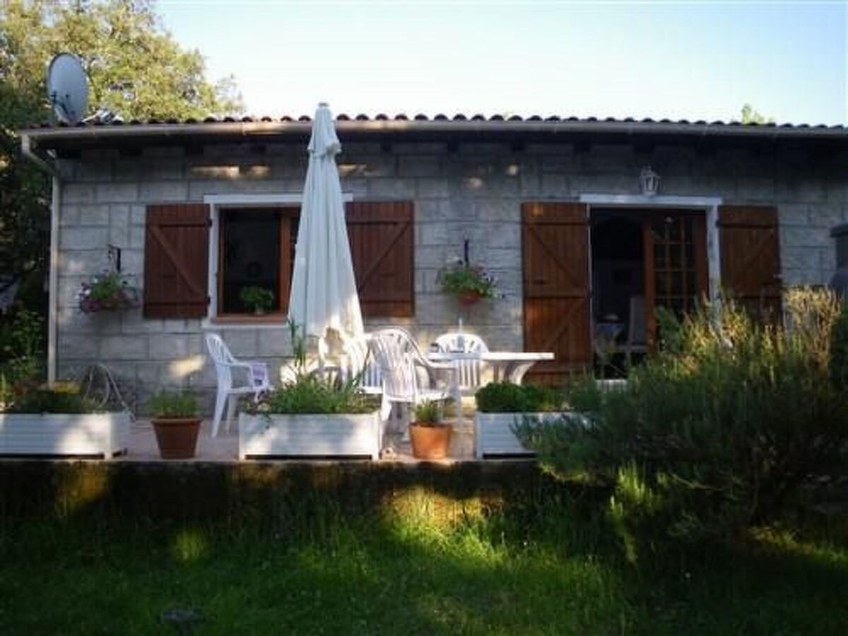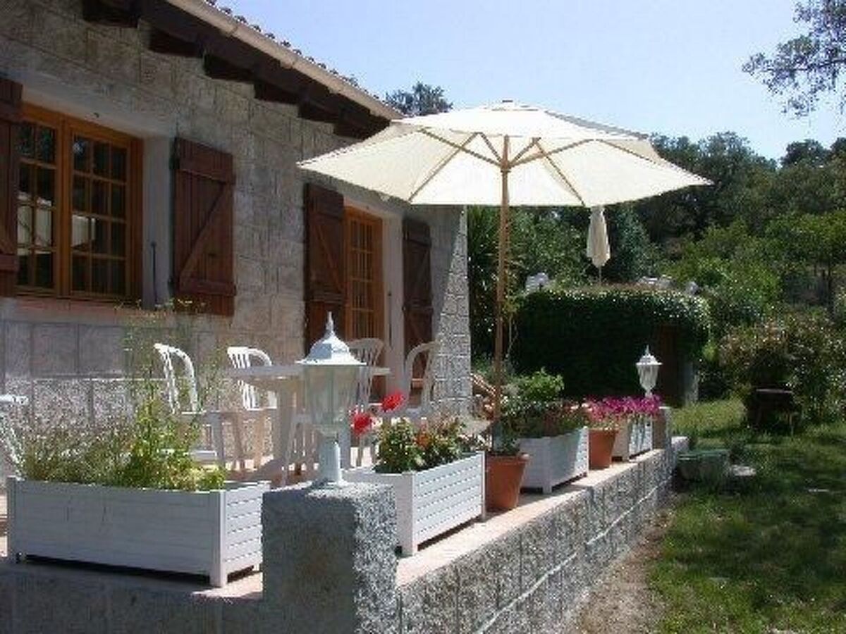 La maison dispose d’une grande terrasse avec meubles de jardin, parasol et barbecue.