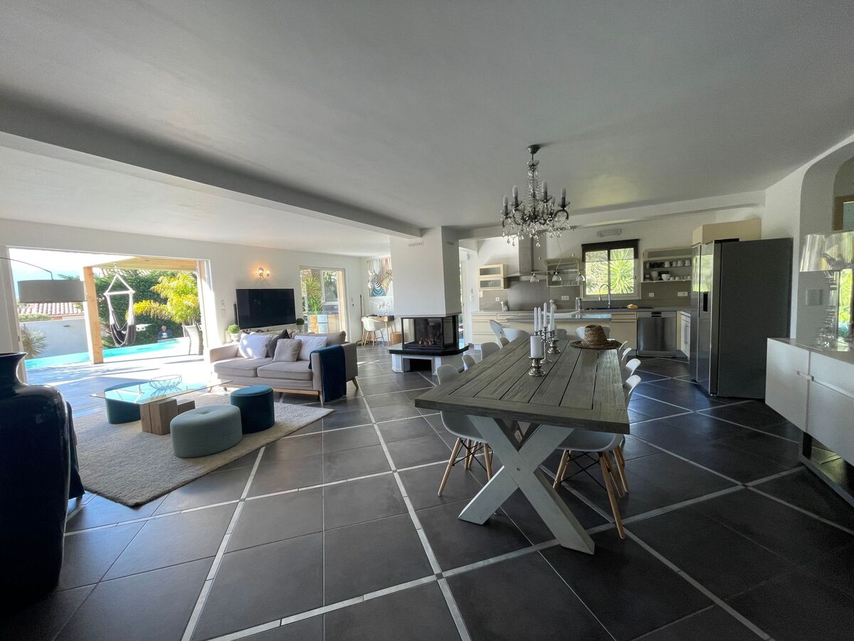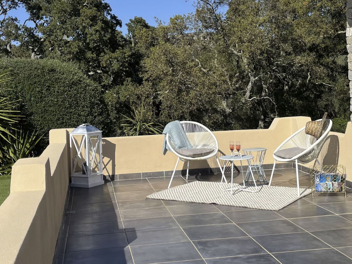 La villa est posée dans un environement calme et bucolique, en plein milieu des chènes lièges et du maquis environnent.