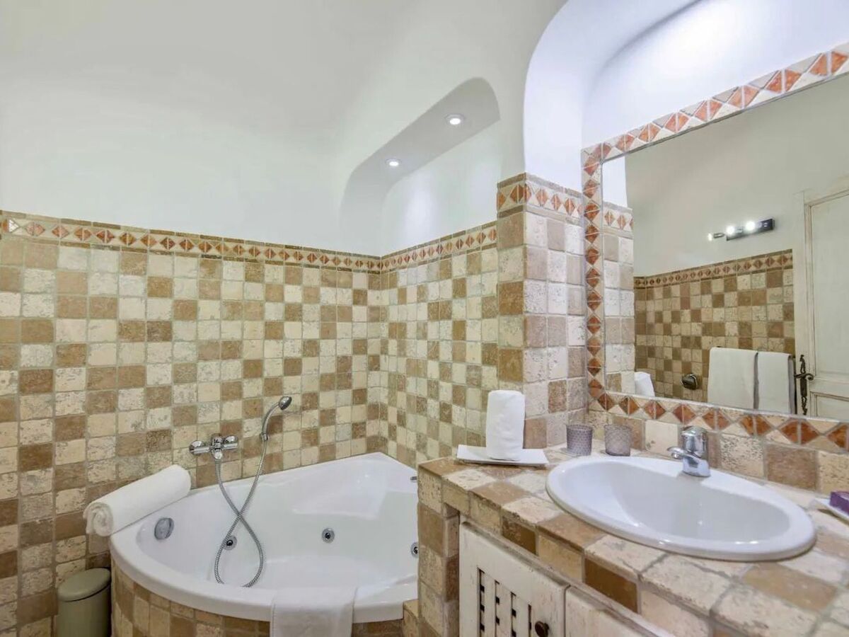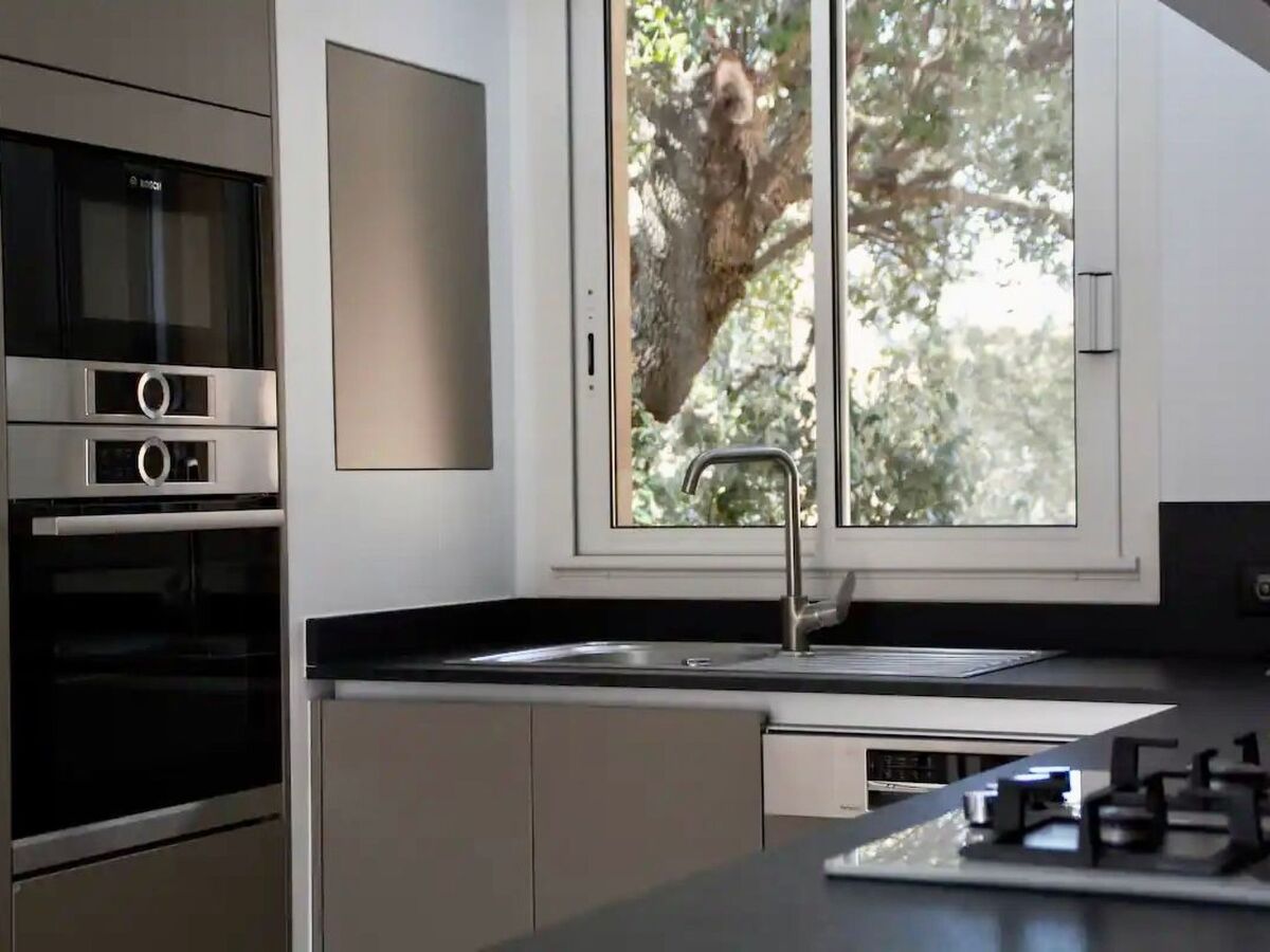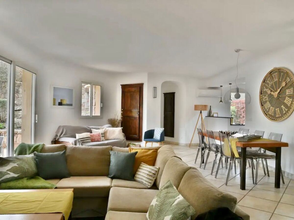 Piscine sécurisée par un rideau électrique, Plage en IPE, Bain de soleil haut de gamme, douche extérieure, cuisine d'été entièrement équipée.