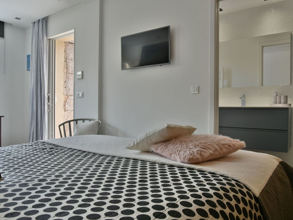 Villa de style Bergerie en pierre, Charme et Tradition Corse avec une décoration contemporaine à l'intérieur. Confort maximal, prestations haut de gamme. Villa à louer à Porto-Vecchio, Bocca dell'oro, au croisement des plus belles plages de Corse et de France " Santa Giulia et Palombaggia, Tamaricciu et Asciaghju. Quartier calme et très résidentiel. A 5 km du centre ville de Porto vecchio A 25 km de Bonifacio A 20 km de la montagne de l'ospédale Terrain clos entièrement par des murs en pierre et un portail électrique avec télécommande. Une piscine vous étonnera avec sa chute d'eau en cascade, exposition sud, privée, chauffée en dehors de la période d'été, sécurisée par son rideau électrique. Plusieurs terrasses en ipé ont été réalisées pour tous les moments de la journée, soit aménagée avec un salon extérieur d'été en alu et toile batiline, soit devant la piscine avec les bains de soleil. Un petit coin sous un toit en bois est conçu pour ceux qui préfèrent un endroit ombragé pour un petit moment apéritif. Une cuisine d'été vous accueillera pour vos repas à l'extérieur, entièrement équipée + BBQ. Vous serez séduit par un bassin dans les rochers, pour une invitation à une détente sous l'eau d'une fontaine. Un jardin et passage en dallage entourés de plantes et arbres méditerranéens aux essences et senteurs Corses. Villa de plain pied, 3 chambres en suites avec pour chacune 1 salle de bain/toilettes, 1 bureau, 1 smart TV ( une chambre isolée pour une intimité maximale et sortie à l'extérieur avec une porte fenêtre en galandage. Une des 3 chambres possède une baignoire balnéothérapie et chromothérapie. Une cuisine moderne avec un plan de travail en granit noir, électroménagers haut de gamme, frigo Américain, Nespresso, blender, plaque de cuisson 5 feux, un cellier buanderie avec placard à denrée, lave linge, sèche linge, bac. Salon grand canapé d'angle + un TV LED, lecteur dvd, Cable. Maison entièrement climatisée en gainage. Situation idéale Lit d'appoint si besoin Nécessaire puériculture à disposition si nécessaire Informations de base - Animaux domestiques admis: aucun - Type de logement: Maison de vacances - se trouve dans: rien d'applicable - type de bâtiment: Maison individuelle - Nombre total d'étages dans le bâtiment au-dessus du rez-de-chaussée: 1 - surface du terrain: 1800 m² - année de construction: 2012 - individuel - non visible depuis la rue - pas de réservation de groupe - pas de groupes de jeunes - logement non-fumeur - Nombre de chambres à coucher: 3 - Nombre de salles de bains : 3 Caractéristiques principales - WiFi - climatisation: Partout - chauffage: Partout - terrasse - jardin: À usage privatif - clos en totalité (par un mur, une clôture ou une haie) - piscine extérieure - ㄴ à usage privatif - ㄴ profondeur maximale: 170 cm - ㄴ longueur: 6 cm - ㄴ largeur: 3 cm - ㄴ chauffage piscine - Nombre total de places de stationnement privées: 3 - ㄴ dont places de garage: Aucun - ㄴ dont places de carport: Aucun - ㄴ dont places de parking extérieures privées: 3 Dormir chambre à coucher 3 - lit double (1,80 m de large) - lit d'appoint chambre à coucher 6 - lit double (de 1,51 m à 1,79 m de large) chambre à coucher 9 - 2x lit simple Salle de bains salle de bains 3 - douche - baignoire - lavabo - WC - sèche-cheveux salle de bains 6 - douche - lavabo - WC - sèche-cheveux salle de bains 9 - douche - lavabo - WC - sèche-cheveux WC invités - lavabo - WC Cuisiner/Habiter - cafetière: cafetière à dosettes - réfrigérateur/congélateur: compartiment congélation, congélateur armoire, réfrigérateur - cuisinière: cuisinière à gaz - hotte - four - grille-pain - micro-ondes - bouilloire électrique - lave-vaisselle - torchons - nombre de tables de salle à manger: 2 - nombre de places: 8 - nombre de salons: 1 Divertissement - Téléviseur: TV, Antenne / DVB-T - TV, TV par câble, TV par satellite - téléviseur connectée - lecteur de DVD Pour les enfants - chaise d'enfant - jouets - jeux de société pour enfants - aire de jeux dans le jardin Entretien ménager - lave-linge: À usage privatif dans le logement - séchoir à linge - fer à repasser - aspirateur - produits d'entretien - détecteur de fumée Espace extérieur - mobilier extérieur - cuisine extérieure - barbecue: barbecue au charbon de bois - douche extérieure Environnement - vue: montagne, jardin, forêt, pré - Centre-ville le plus proche: 5,0 km - Magasin d'alimentation: 2,0 km - bars/discothèques/sorties: 2,0 km - cafés / restaurants: 500 m - aéroport: 20,0 km - port: 5,0 km - plage: 2,5 km - plage de sable: 2,5 km - mer: 2,5 km - fleuve: 20,0 km - sport nautique: 2,5 km - location de bateau - point d'ancrage: 2,5 km - aire de jeux: 5,0 km - terrain de golf: 5,0 km - location de vélos: 5,0 km - sentier de randonnée: 300 m - équitation: 3,0 km