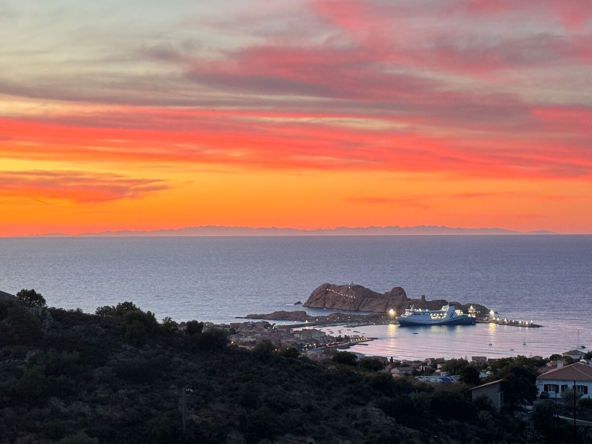 La terrasse extérieure est un véritable havre de paix, offrant un espace repas couvert et un coin relax avec SPA encastré et transats, le tout avec une vue imprenable à 180° sur la baie de l'Île-Rousse.