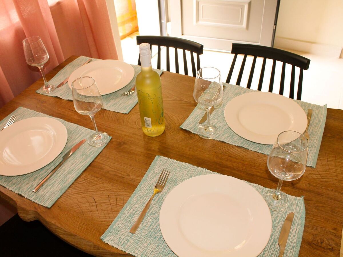 The external staircase from the private parking leads to a lovely and spacious yard with olive trees and greenery.The lovely gazebo with the table where the family can gather and have their meal is situated in such a way that there is always a pleasant breeze.