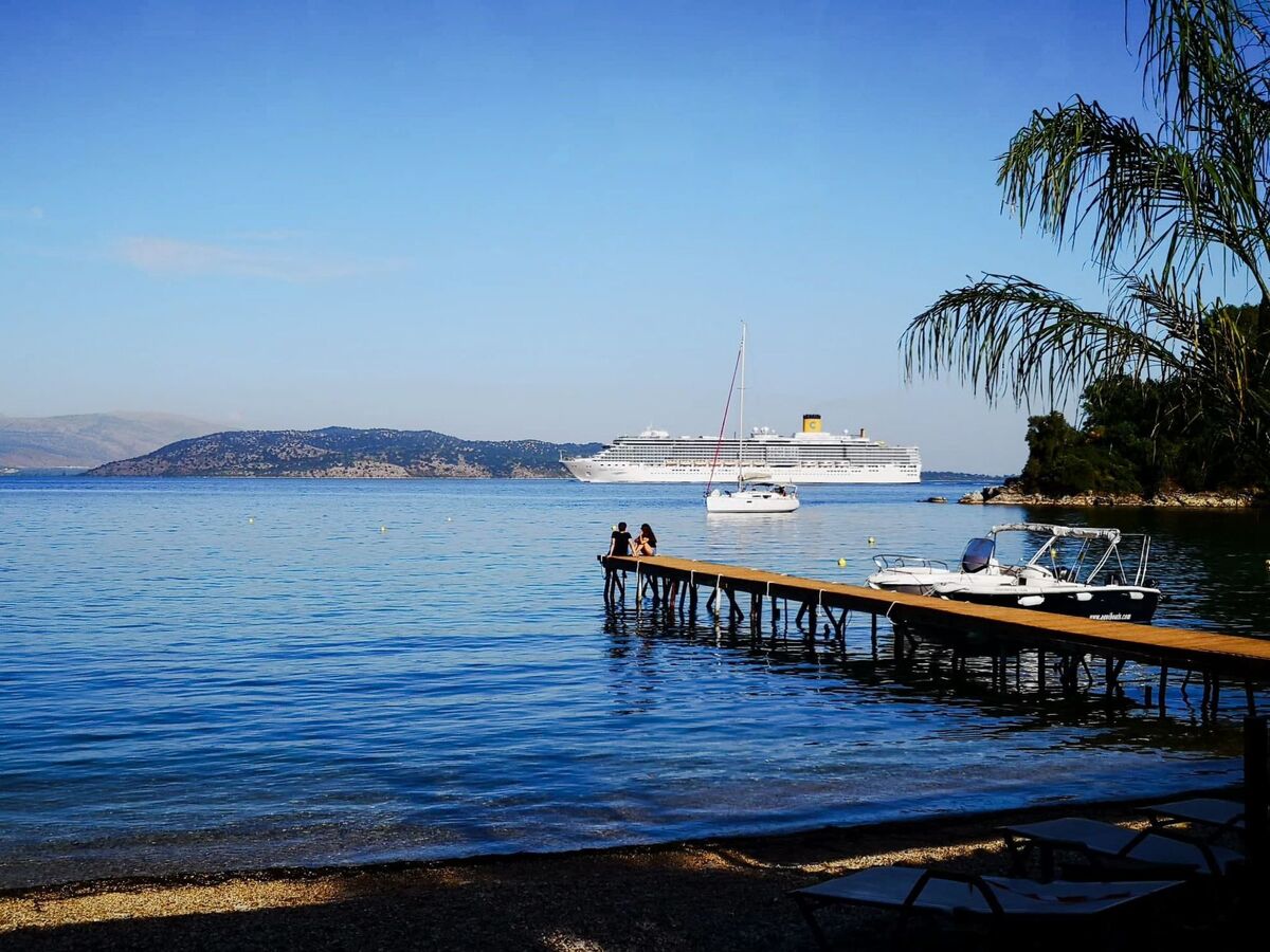 Here you can have sunbeds for free as well as an available car park place and jetties where boats and yachts moor at.The most amazing about Agni is the surrounding dense vegetation and the unparalleled views to the sea.
