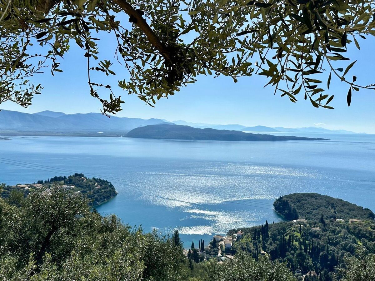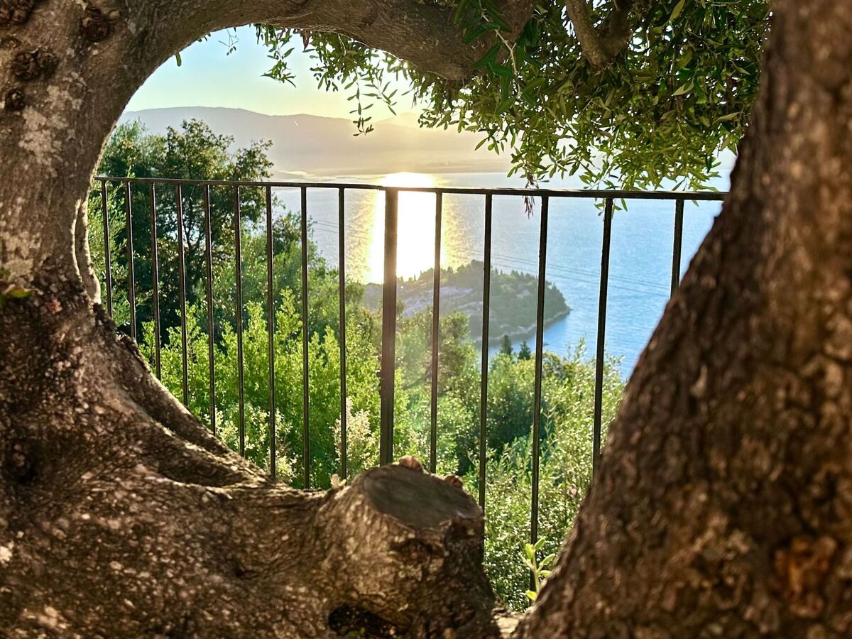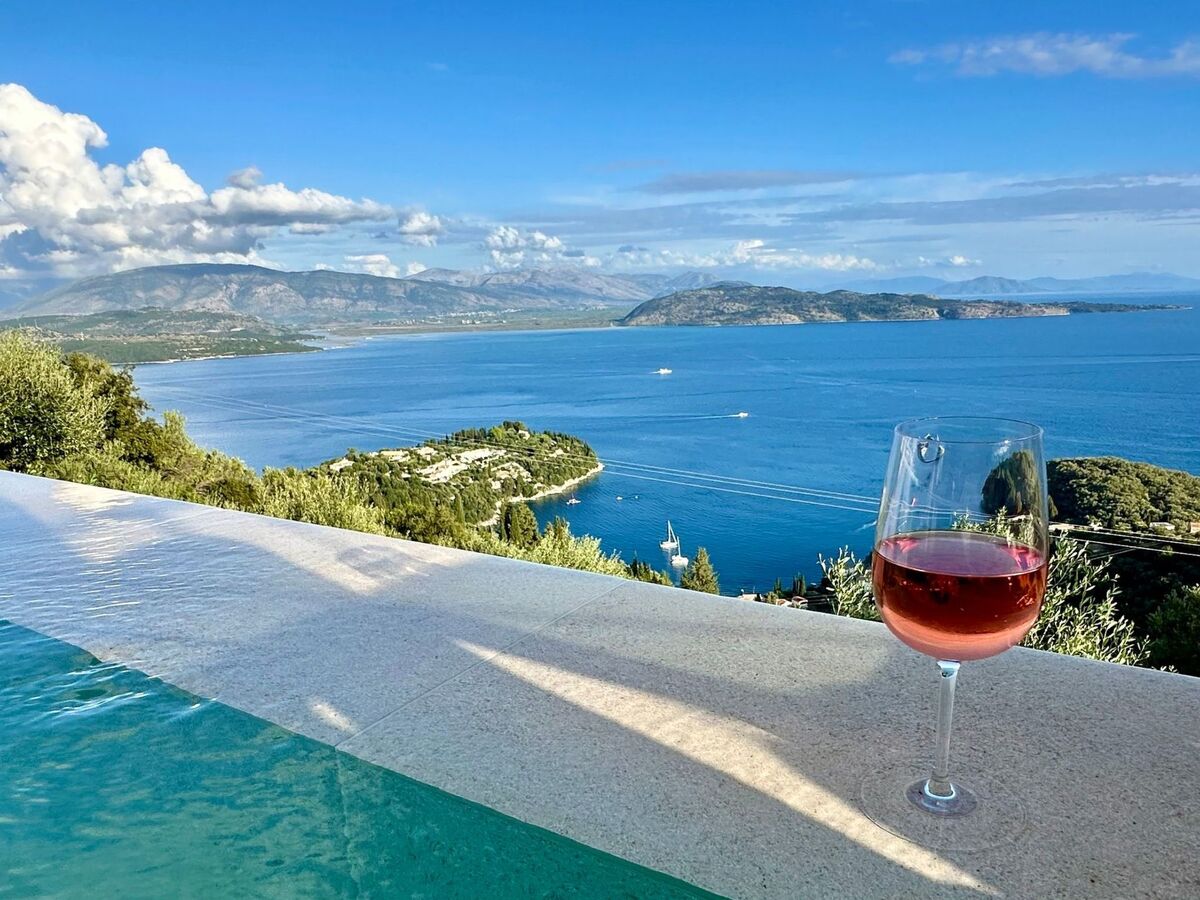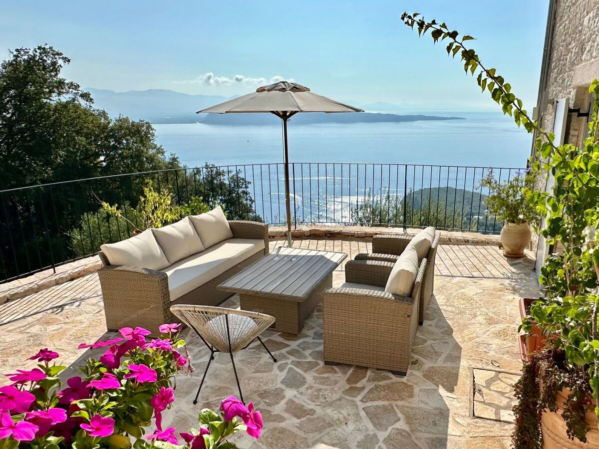 The villa is located in a spectacular location with panoramic views of the sea and mainland, just a short drive from Kalami, Kouloura, and Agni.
