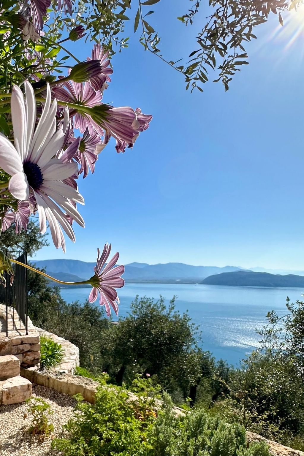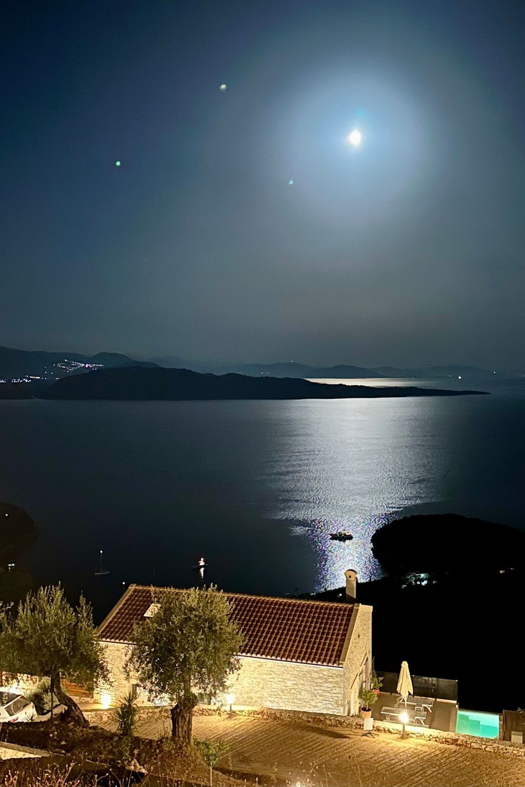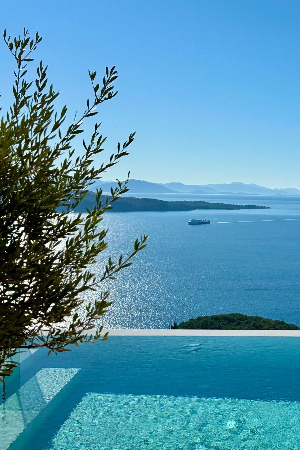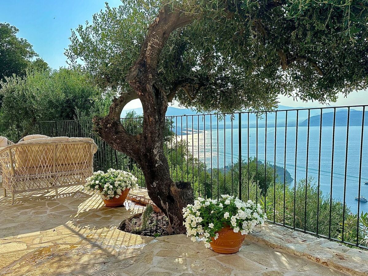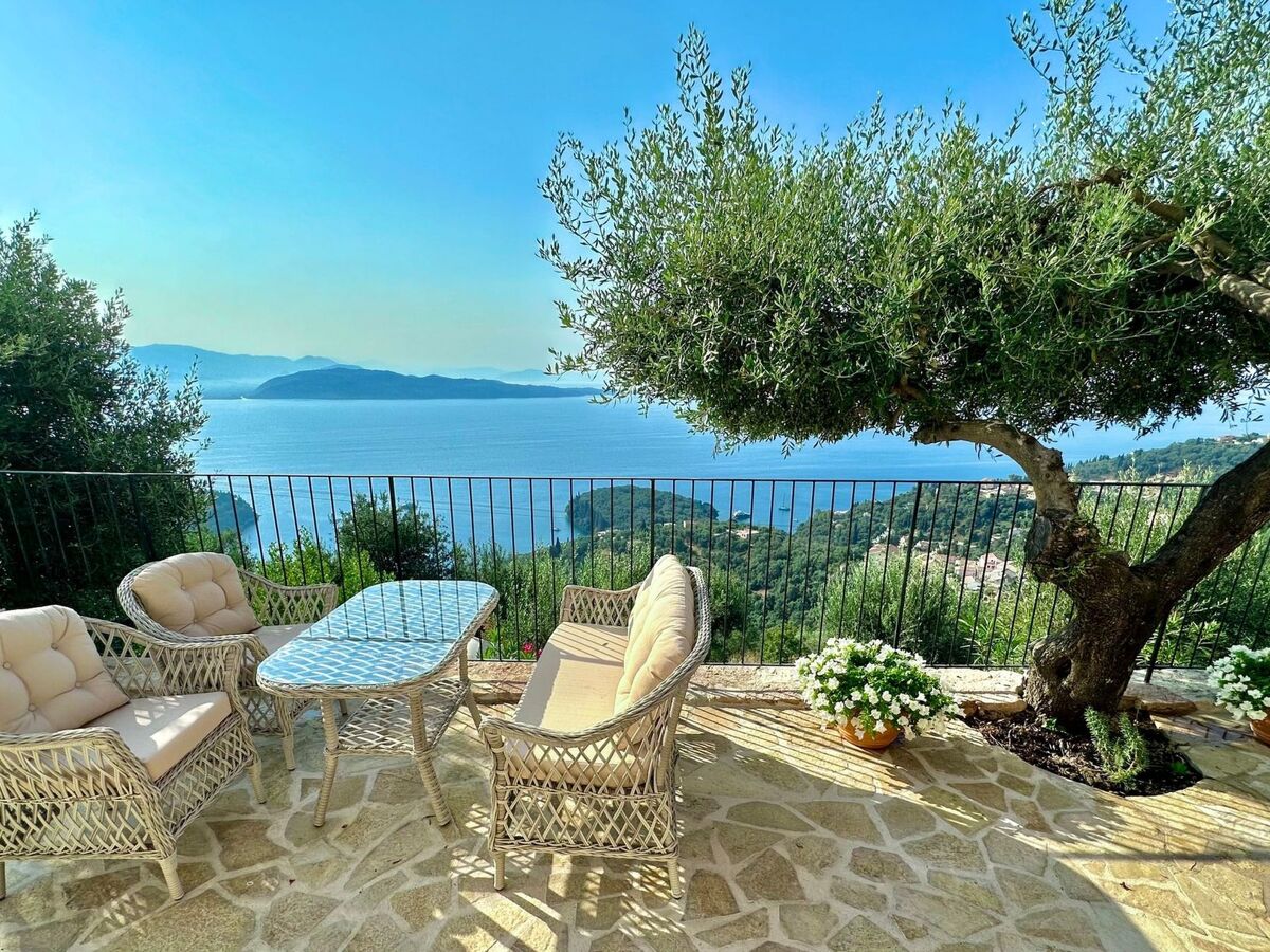 The villa is located in a spectacular location with panoramic views of the sea and mainland, just a short drive from Kalami, Kouloura, and Agni.