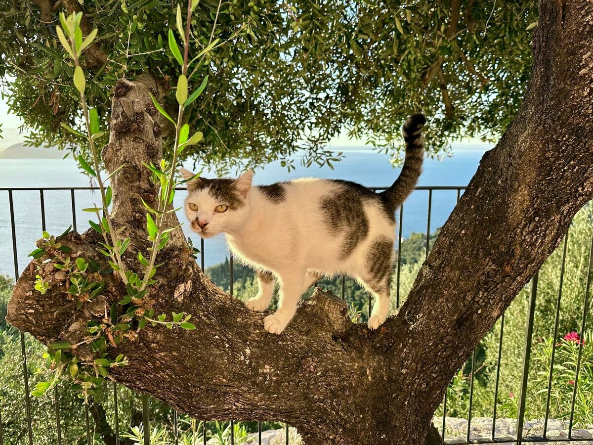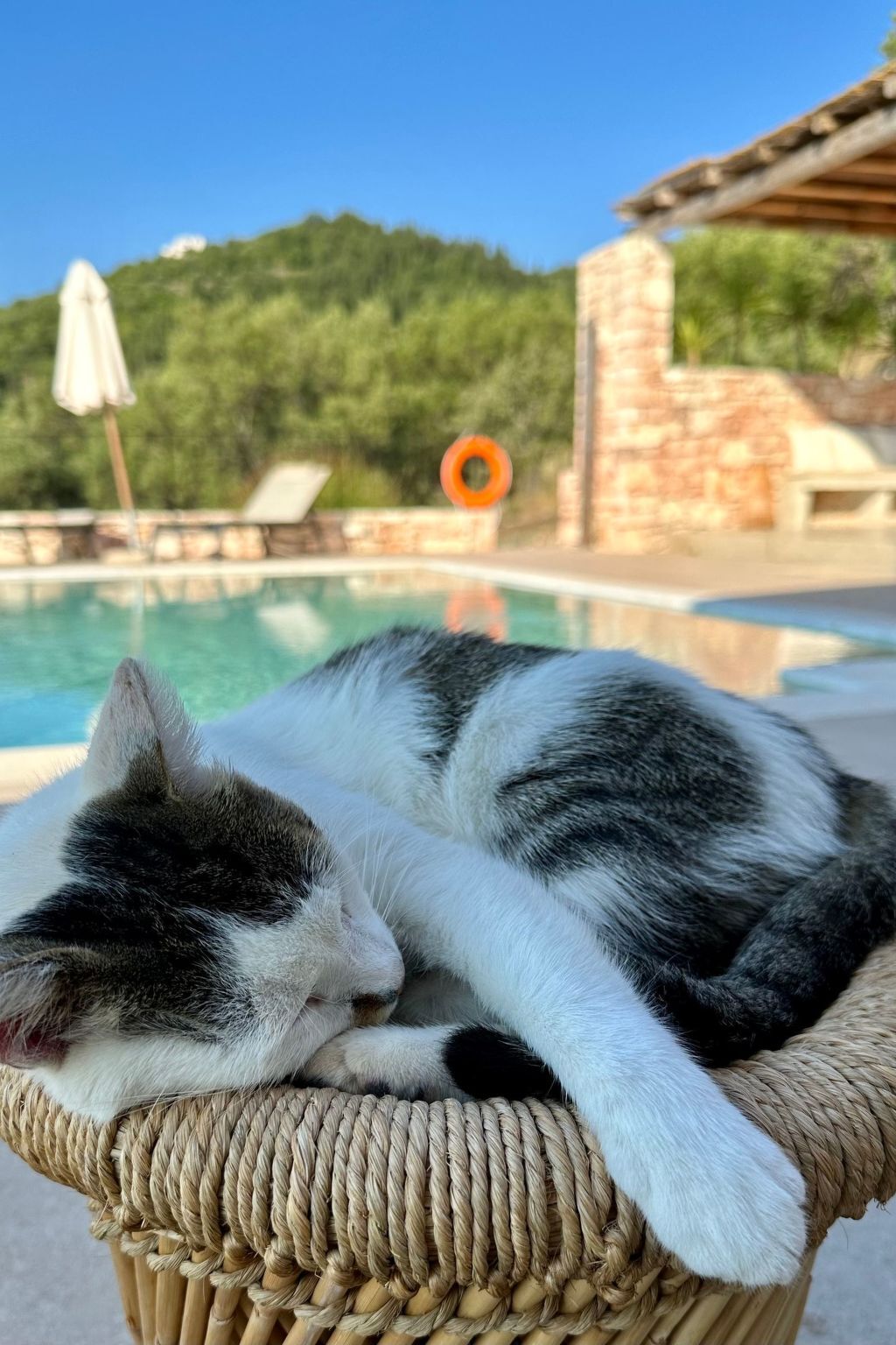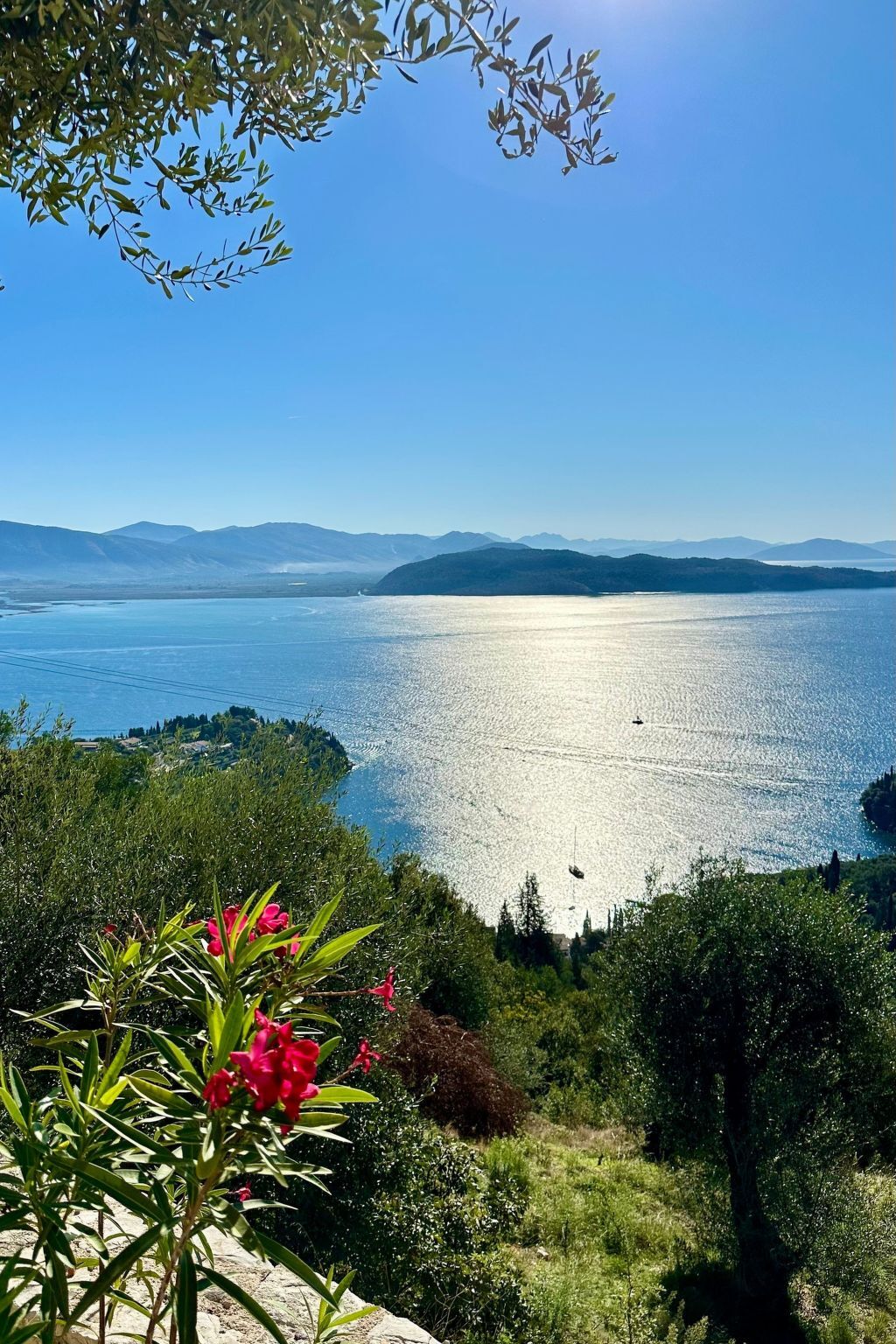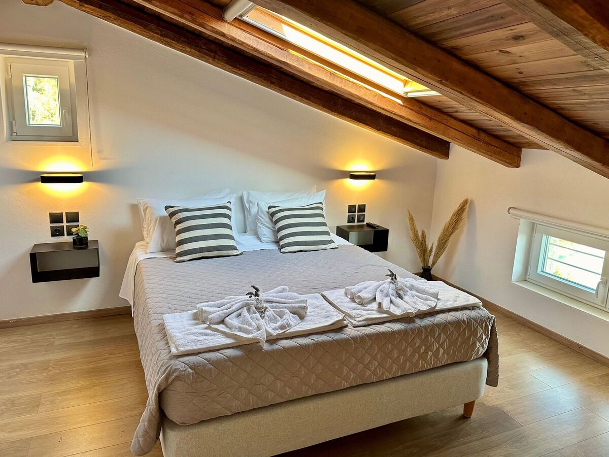 The villa is located in a spectacular location with panoramic views of the sea and mainland, just a short drive from Kalami, Kouloura, and Agni.