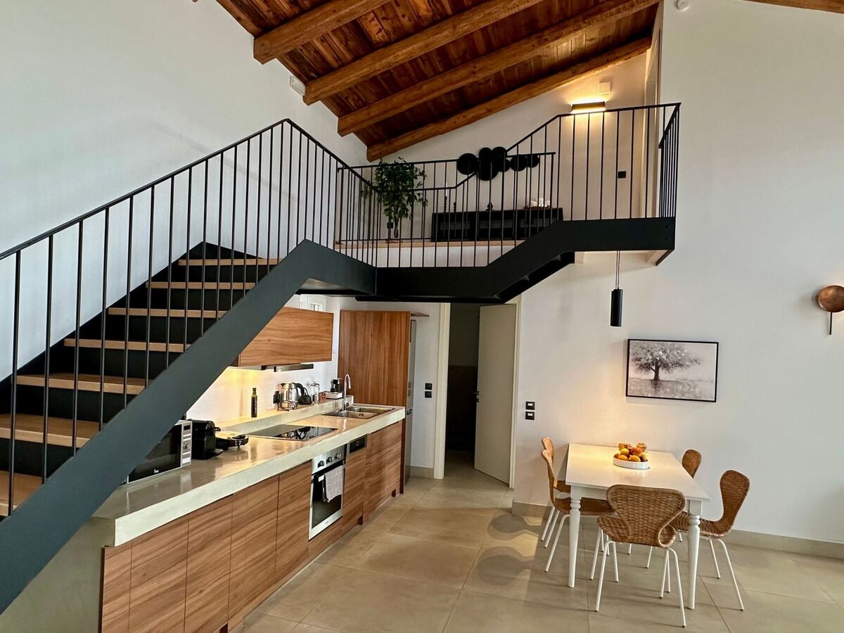 A small mezzanine on the first floor overlooks the living area and provides additional space for relaxation.