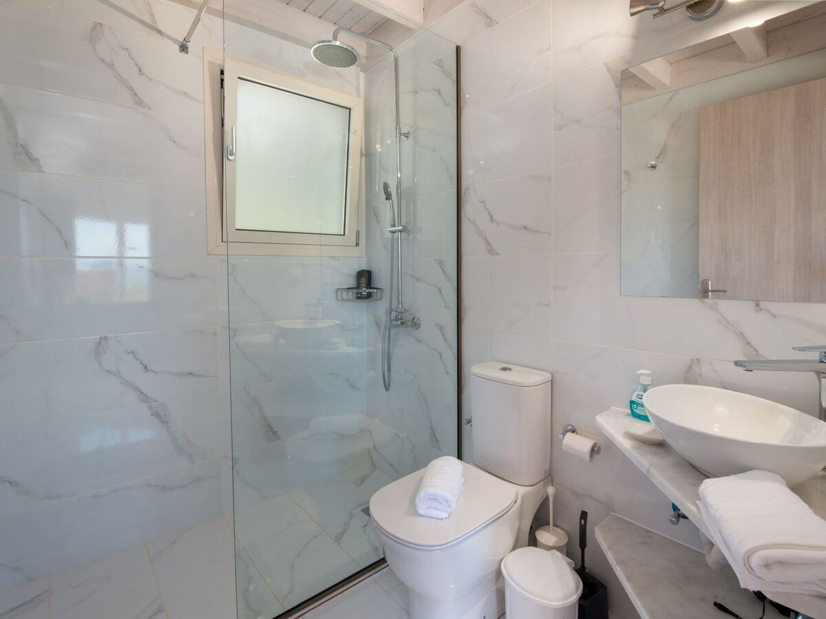 The shower room boasts polished marble tiles for a luxurious touch, adding to the overall ambiance of the villa.Additional features of Telia Thea include free Wi-Fi, a washing machine, ironing facilities, and private parking.