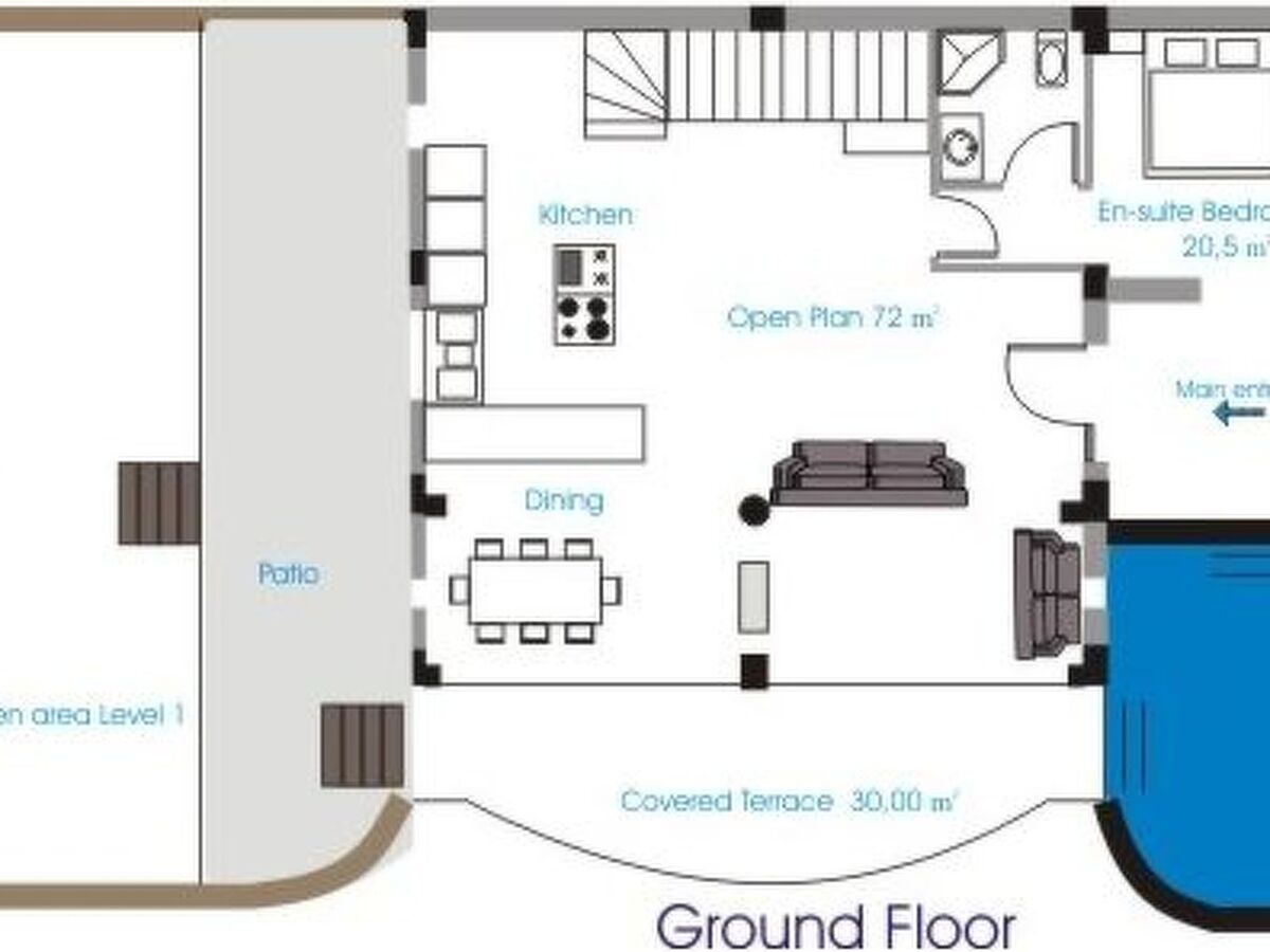 The villa’s prime location ensures that you are just a leisurely 750m stroll away from the nearest town center, grocery store, and the mesmerizing beach, sea, and water sports activities, placing the best of the region at your fingertips.