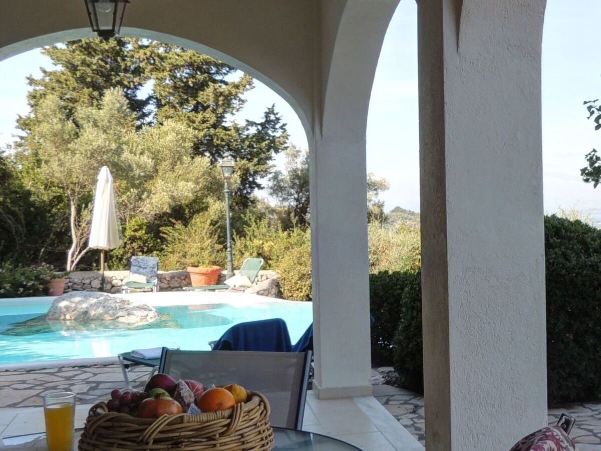 In villa Anthea Rossa, the main entrance from the iron gate through gardens of olive and flowers, is shared.