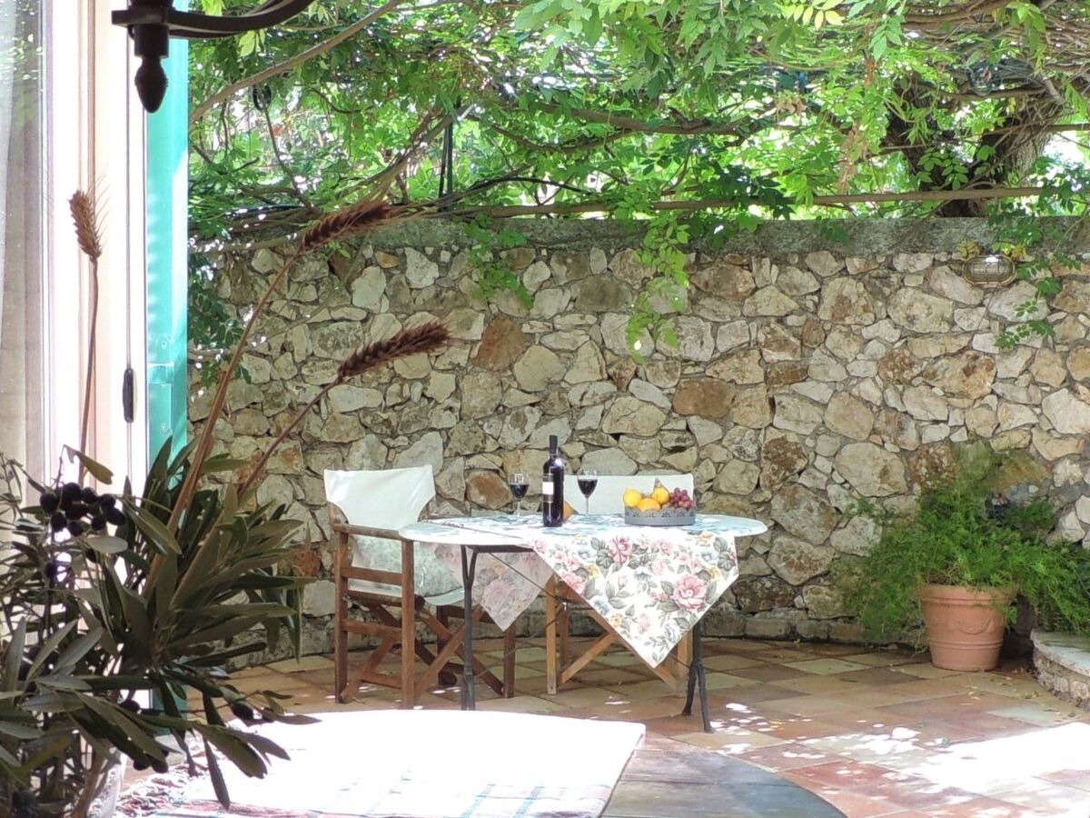 In villa Anthea Rossa, the main entrance from the iron gate through gardens of olive and flowers, is shared.