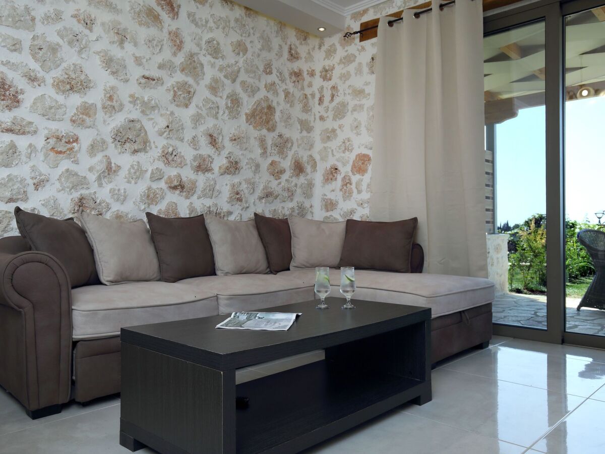 The outdoor area is perfect for relaxing moments, featuring a private swimming pool, comfortable seating area, BBQ, and a stunning view of the Ionian Sea and the sunset.