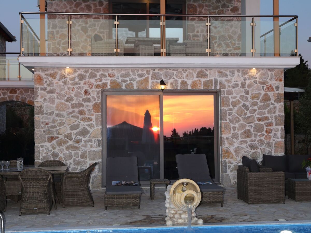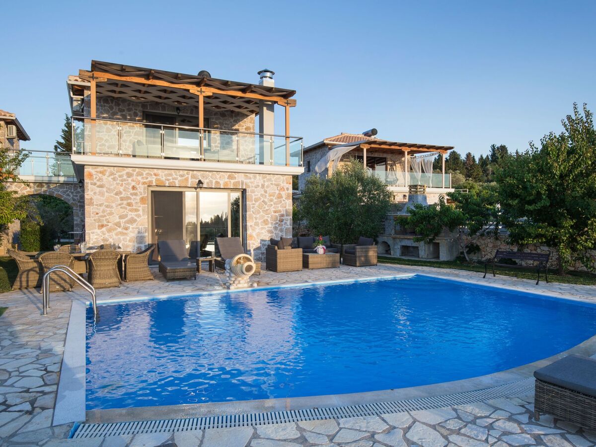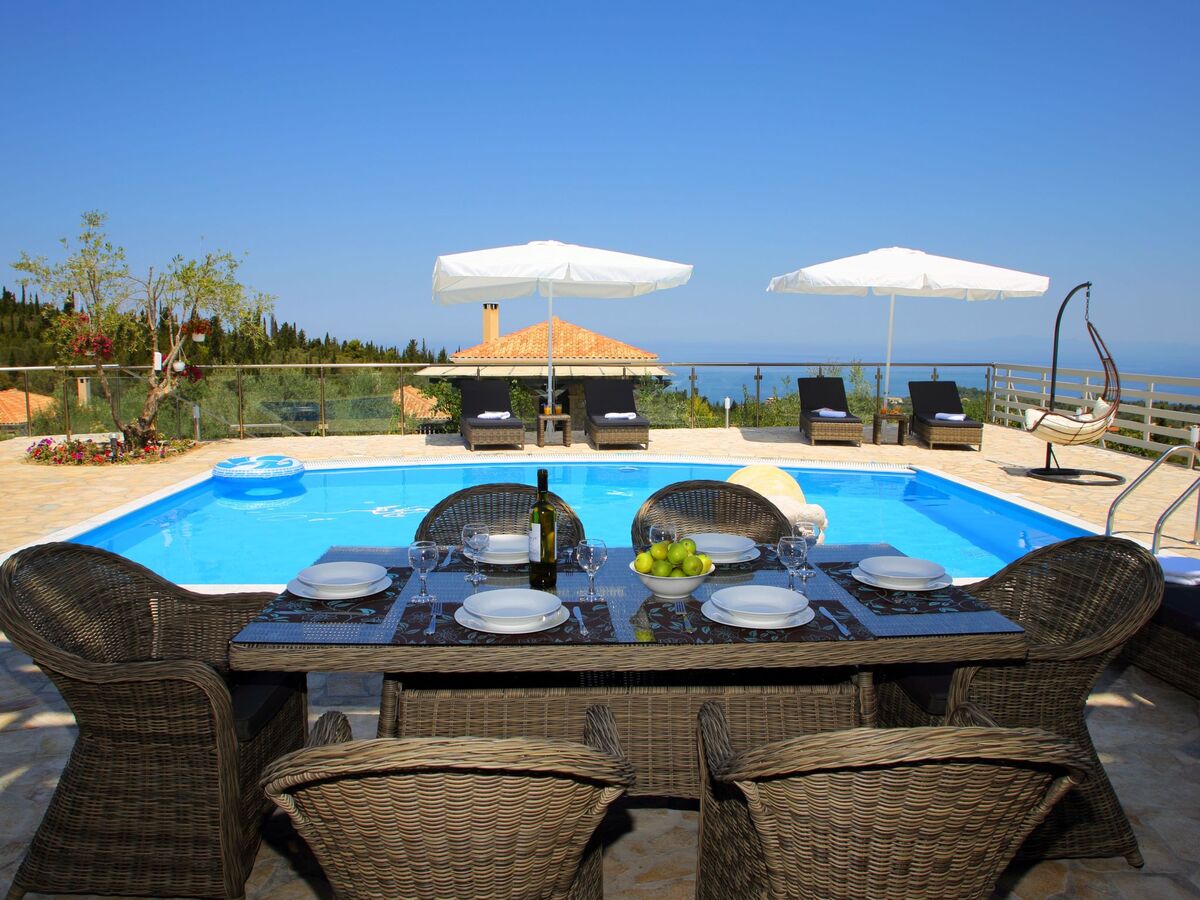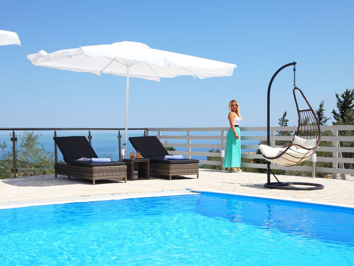 Villa Angela is elegantly designed and beautifully decorated with charming touches inspired by the sea and nature, creating a serene atmosphere that invites you to relax and unwind. This stunning two-bedroom villa is ideal for up to six guests, offering comfort, privacy, and a touch of luxury for an unforgettable holiday on the island of Lefkada. As you enter the villa, you’ll find a spacious living room and a fully equipped kitchen — perfect for sharing meals and moments with family or friends. On this level, there is also the second bedroom, featuring two single beds and its own private bathroom with a shower, providing extra comfort and privacy for guests. Upstairs, you’ll find the bright master bedroom with a double bed and a private bathroom with a hydromassage shower. Outside, enjoy the peaceful setting of the private terrace, relax by the pool, or savor a meal in the BBQ area surrounded by lush greenery. Villa Angela is the perfect retreat for families or groups seeking tranquility, elegance, and unforgettable sunsets. Basic information - Pets allowed: none - Type of property: holiday house - is located in: Complex - type of building: Detached house - Total number of floors in the building above the ground floor: 1 - size of property: 90 m² - year of construction: 2017 - Year of the last complete renovation : 2017 - detached house - Number of bedrooms: 2 - Number of bathrooms: 3 Top features - WiFi - air conditioning: Everywhere - terrace - garden: For sole use - completely enclosed (by wall, fence or hedge) - outdoor pool - ㄴ for sole use - ㄴ maximum depth: 1 cm - ㄴ length: 900 cm - ㄴ width: 500 cm - Total of private car parking spaces: 2 - ㄴ of which garage spaces: None - ㄴ of which private outdoor parking spaces: 2 Sleeping bedroom 2 - double bed (from 1.51 m to 1.79 m width) bedroom 4 - single bed in the living area - double sofa bed for 2 people - extra bed - child's bed/ baby's cot Bathroom bathroom 2 - shower bathroom 4 - shower bathroom 6 - shower Cooking/Living - coffee machine: espresso coffee pot, filter coffee machine, coffee machine - fridge/freezer: fridge - stove: electric stove, stove - oven - toaster - electric kettle - number of dining tables: 1 - number of seats: 6 - number of living rooms: 1 - living room is dimmable - stove Entertainment - TV: TV, cable TV, satellite TV For children - high chair Utility - washing machine: For sole use in the object - iron - safe Outside area - veranda - roof terrace - grill/barbecue: Charcoal grill Surroundings - Nearest town centre: 5,0 km - Grocery store: 500 m - going out: 500 m - restaurant: 500 m - airport: 38,0 km - distance public transport: 500 m - beach: 1,0 km - shingle beach: 1,0 km - concrete beach: 2,0 km - sandy beach: 2,0 km - water (sea, lake, etc.): 2,0 km - sea: 2,0 km - water sports: 5,0 km