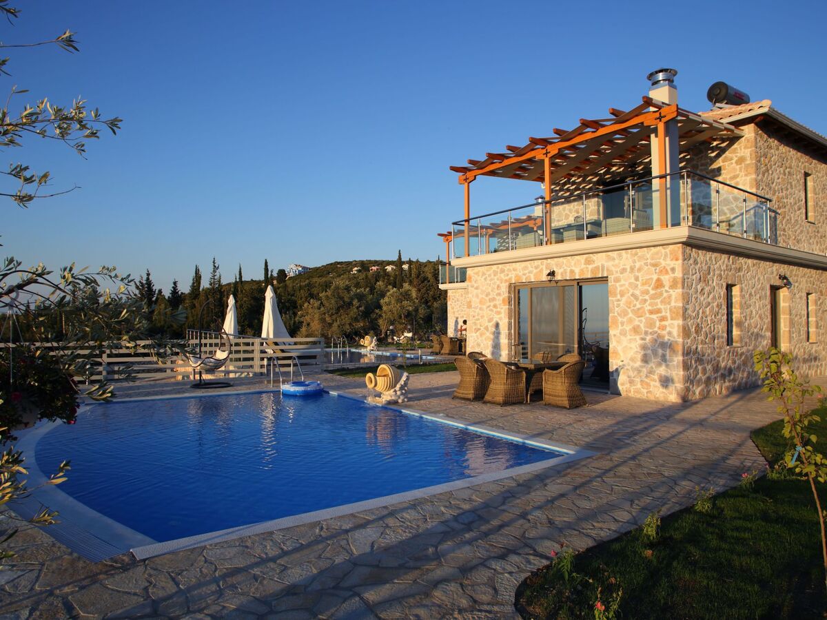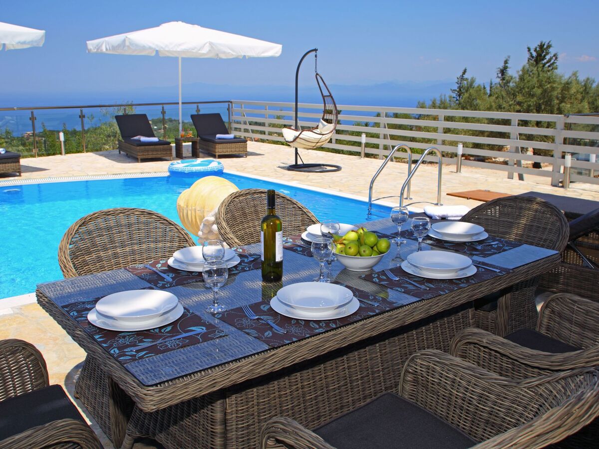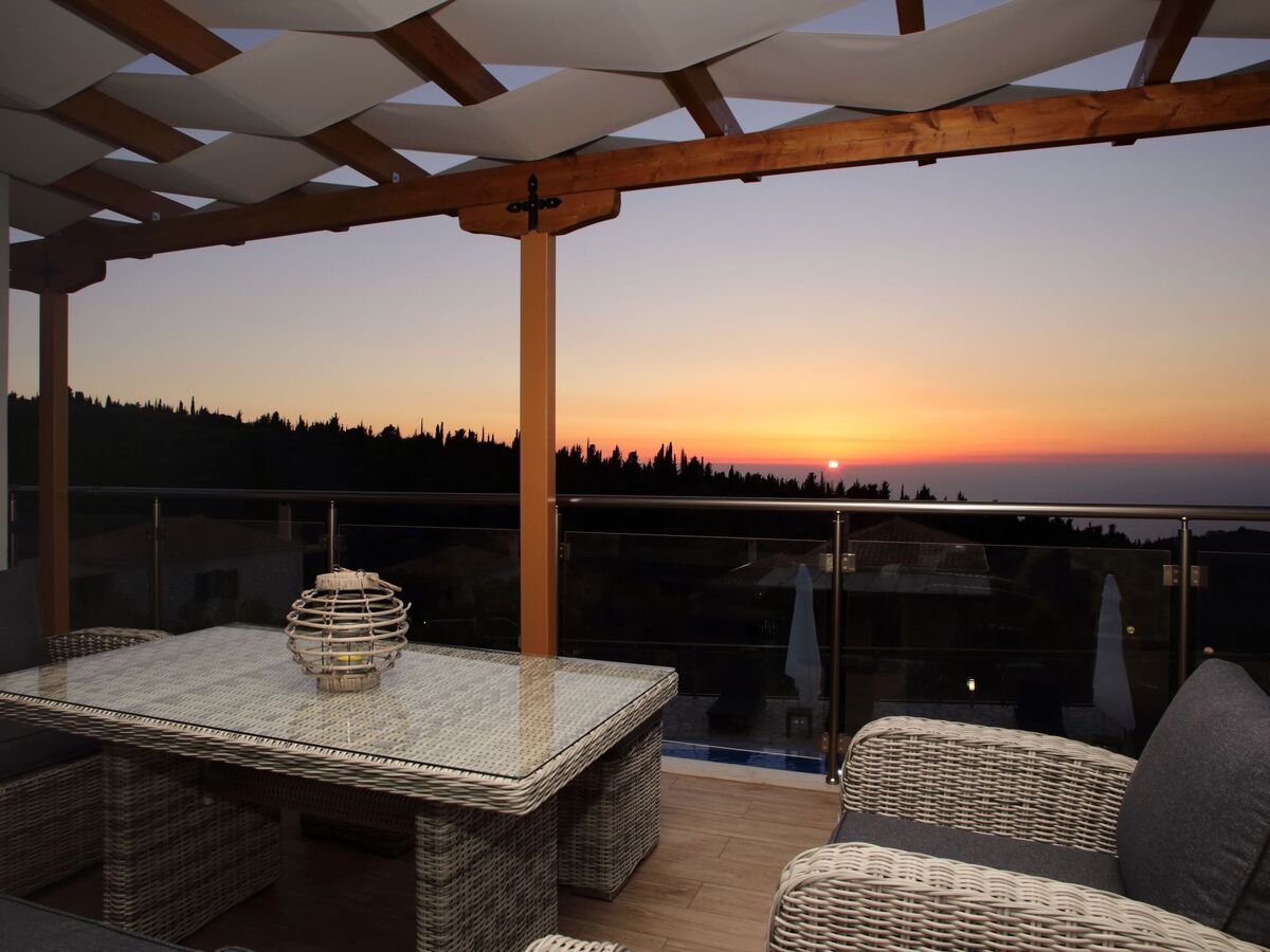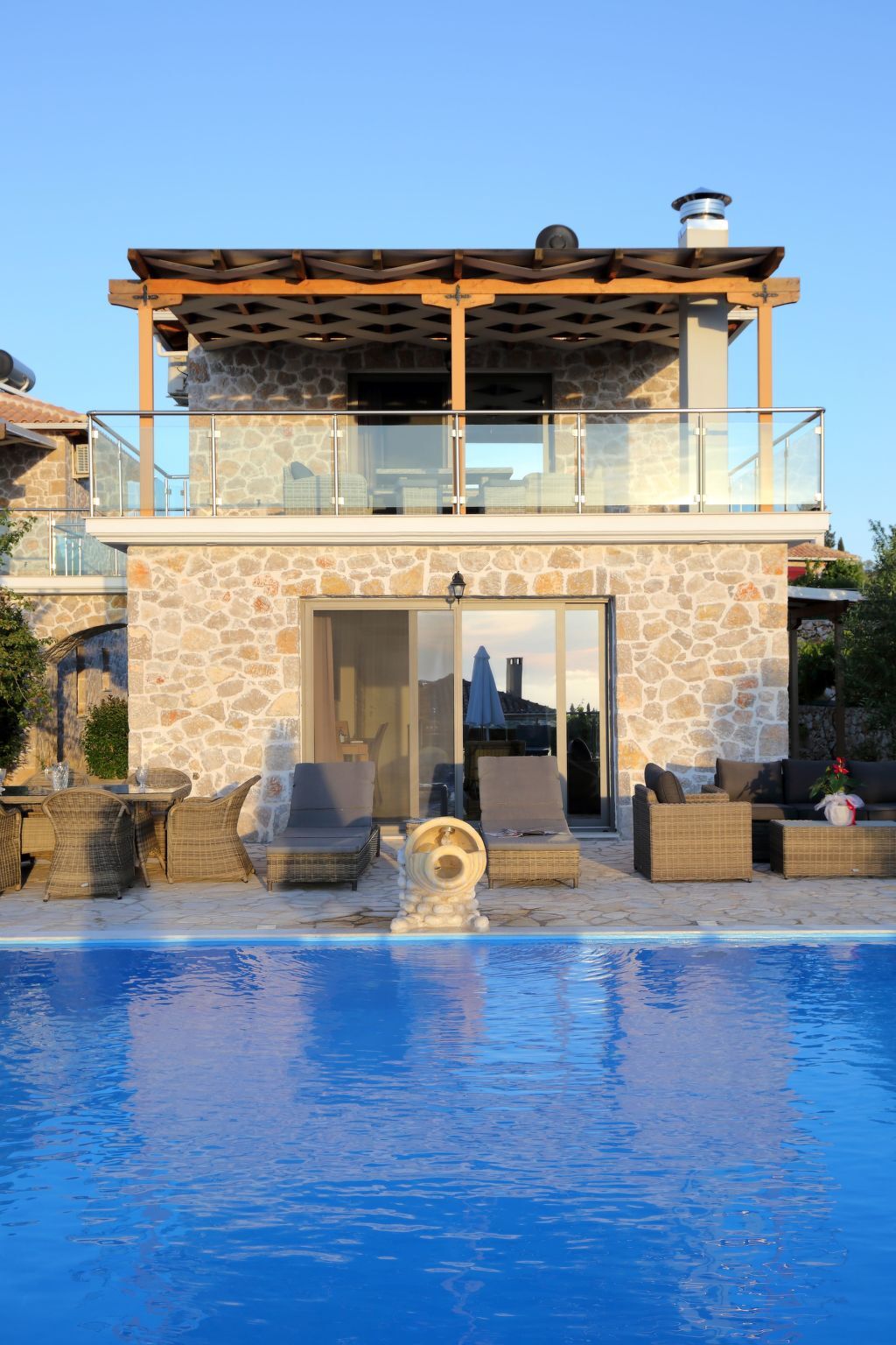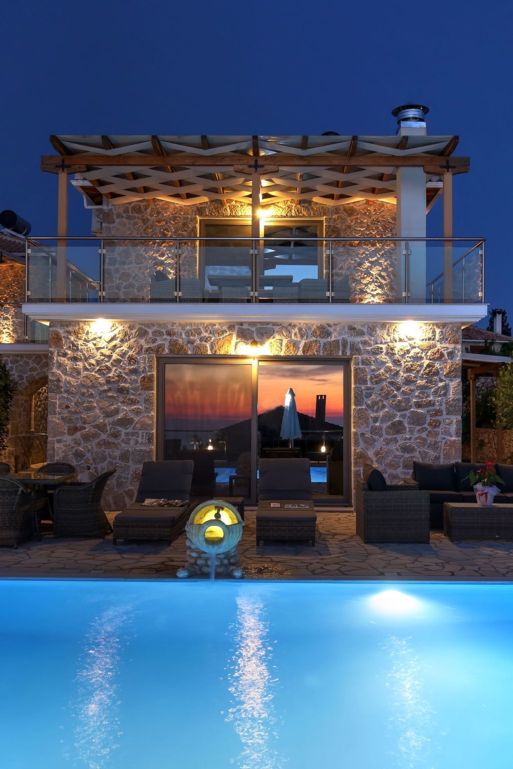 Villa Angela is elegantly designed and beautifully decorated with charming touches inspired by the sea and nature, creating a serene atmosphere that invites you to relax and unwind. This stunning two-bedroom villa is ideal for up to six guests, offering comfort, privacy, and a touch of luxury for an unforgettable holiday on the island of Lefkada. As you enter the villa, you’ll find a spacious living room and a fully equipped kitchen — perfect for sharing meals and moments with family or friends. On this level, there is also the second bedroom, featuring two single beds and its own private bathroom with a shower, providing extra comfort and privacy for guests. Upstairs, you’ll find the bright master bedroom with a double bed and a private bathroom with a hydromassage shower. Outside, enjoy the peaceful setting of the private terrace, relax by the pool, or savor a meal in the BBQ area surrounded by lush greenery. Villa Angela is the perfect retreat for families or groups seeking tranquility, elegance, and unforgettable sunsets. Basic information - Pets allowed: none - Type of property: holiday house - is located in: Complex - type of building: Detached house - Total number of floors in the building above the ground floor: 1 - size of property: 90 m² - year of construction: 2017 - Year of the last complete renovation : 2017 - detached house - Number of bedrooms: 2 - Number of bathrooms: 3 Top features - WiFi - air conditioning: Everywhere - terrace - garden: For sole use - completely enclosed (by wall, fence or hedge) - outdoor pool - ㄴ for sole use - ㄴ maximum depth: 1 cm - ㄴ length: 900 cm - ㄴ width: 500 cm - Total of private car parking spaces: 2 - ㄴ of which garage spaces: None - ㄴ of which private outdoor parking spaces: 2 Sleeping bedroom 2 - double bed (from 1.51 m to 1.79 m width) bedroom 4 - single bed in the living area - double sofa bed for 2 people - extra bed - child's bed/ baby's cot Bathroom bathroom 2 - shower bathroom 4 - shower bathroom 6 - shower Cooking/Living - coffee machine: espresso coffee pot, filter coffee machine, coffee machine - fridge/freezer: fridge - stove: electric stove, stove - oven - toaster - electric kettle - number of dining tables: 1 - number of seats: 6 - number of living rooms: 1 - living room is dimmable - stove Entertainment - TV: TV, cable TV, satellite TV For children - high chair Utility - washing machine: For sole use in the object - iron - safe Outside area - veranda - roof terrace - grill/barbecue: Charcoal grill Surroundings - Nearest town centre: 5,0 km - Grocery store: 500 m - going out: 500 m - restaurant: 500 m - airport: 38,0 km - distance public transport: 500 m - beach: 1,0 km - shingle beach: 1,0 km - concrete beach: 2,0 km - sandy beach: 2,0 km - water (sea, lake, etc.): 2,0 km - sea: 2,0 km - water sports: 5,0 km