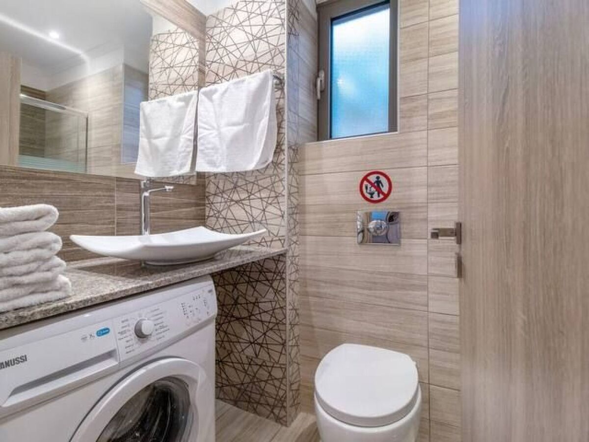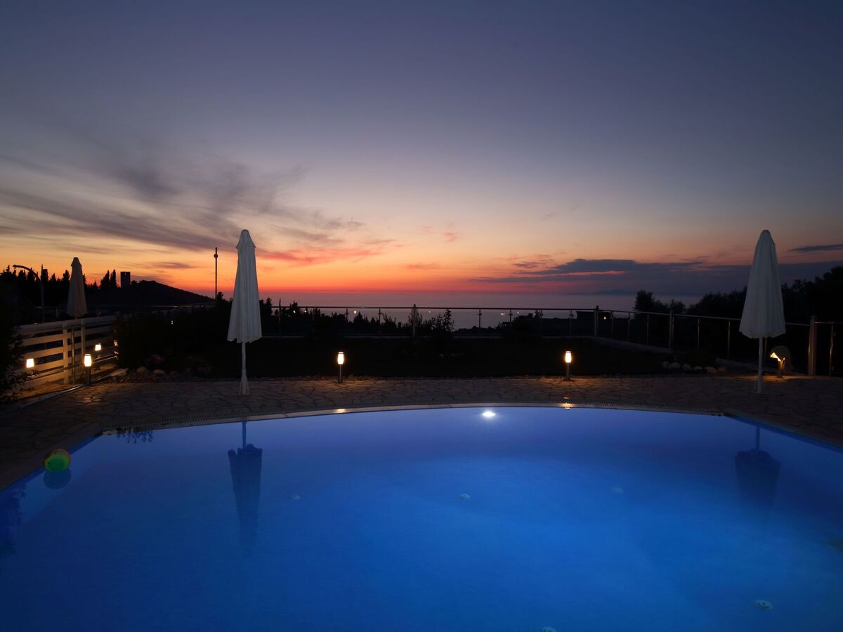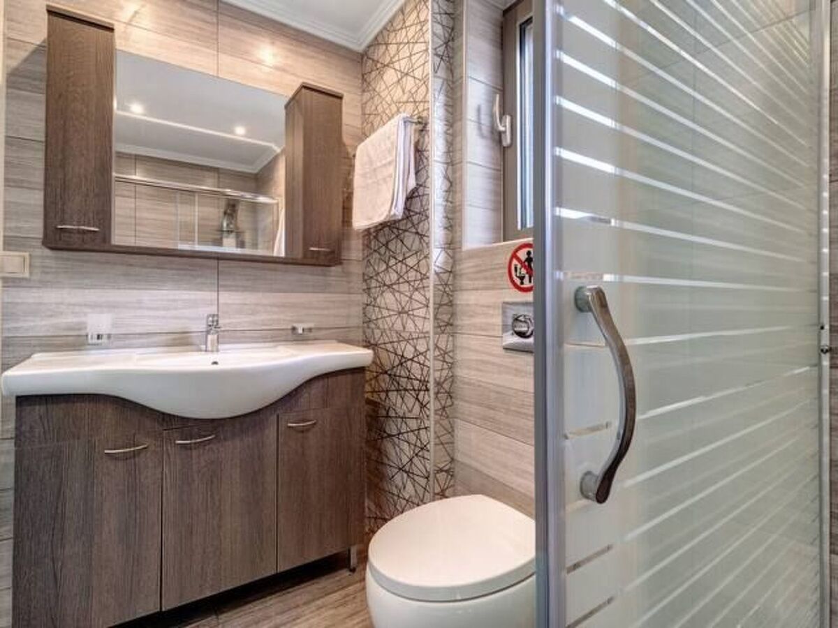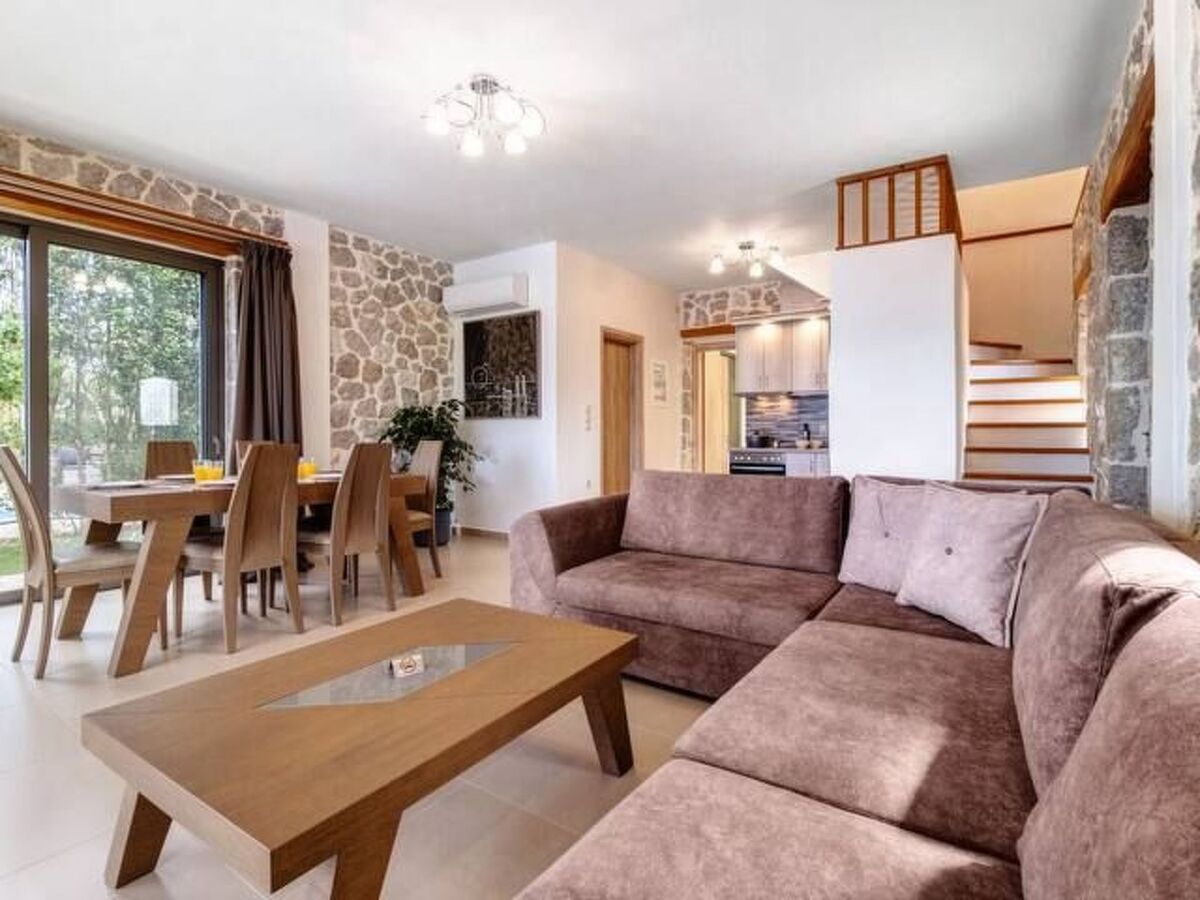 Villa Angela is elegantly designed and beautifully decorated with charming touches inspired by the sea and nature, creating a serene atmosphere that invites you to relax and unwind. This stunning two-bedroom villa is ideal for up to six guests, offering comfort, privacy, and a touch of luxury for an unforgettable holiday on the island of Lefkada. As you enter the villa, you’ll find a spacious living room and a fully equipped kitchen — perfect for sharing meals and moments with family or friends. On this level, there is also the second bedroom, featuring two single beds and its own private bathroom with a shower, providing extra comfort and privacy for guests. Upstairs, you’ll find the bright master bedroom with a double bed and a private bathroom with a hydromassage shower. Outside, enjoy the peaceful setting of the private terrace, relax by the pool, or savor a meal in the BBQ area surrounded by lush greenery. Villa Angela is the perfect retreat for families or groups seeking tranquility, elegance, and unforgettable sunsets. Basic information - Pets allowed: none - Type of property: holiday house - is located in: Complex - type of building: Detached house - Total number of floors in the building above the ground floor: 1 - size of property: 90 m² - year of construction: 2017 - Year of the last complete renovation : 2017 - detached house - Number of bedrooms: 2 - Number of bathrooms: 3 Top features - WiFi - air conditioning: Everywhere - terrace - garden: For sole use - completely enclosed (by wall, fence or hedge) - outdoor pool - ㄴ for sole use - ㄴ maximum depth: 1 cm - ㄴ length: 900 cm - ㄴ width: 500 cm - Total of private car parking spaces: 2 - ㄴ of which garage spaces: None - ㄴ of which private outdoor parking spaces: 2 Sleeping bedroom 2 - double bed (from 1.51 m to 1.79 m width) bedroom 4 - single bed in the living area - double sofa bed for 2 people - extra bed - child's bed/ baby's cot Bathroom bathroom 2 - shower bathroom 4 - shower bathroom 6 - shower Cooking/Living - coffee machine: espresso coffee pot, filter coffee machine, coffee machine - fridge/freezer: fridge - stove: electric stove, stove - oven - toaster - electric kettle - number of dining tables: 1 - number of seats: 6 - number of living rooms: 1 - living room is dimmable - stove Entertainment - TV: TV, cable TV, satellite TV For children - high chair Utility - washing machine: For sole use in the object - iron - safe Outside area - veranda - roof terrace - grill/barbecue: Charcoal grill Surroundings - Nearest town centre: 5,0 km - Grocery store: 500 m - going out: 500 m - restaurant: 500 m - airport: 38,0 km - distance public transport: 500 m - beach: 1,0 km - shingle beach: 1,0 km - concrete beach: 2,0 km - sandy beach: 2,0 km - water (sea, lake, etc.): 2,0 km - sea: 2,0 km - water sports: 5,0 km