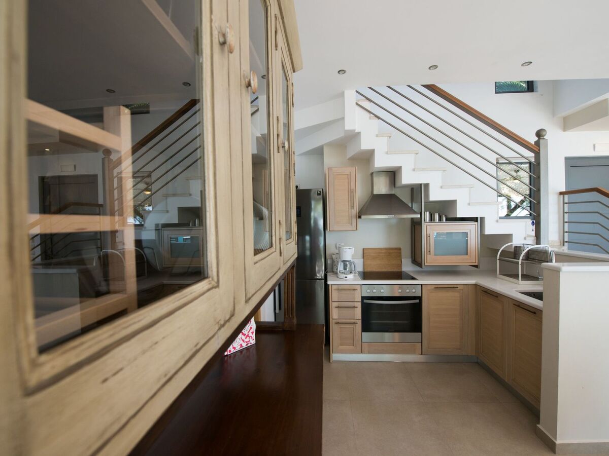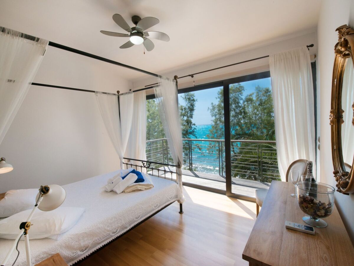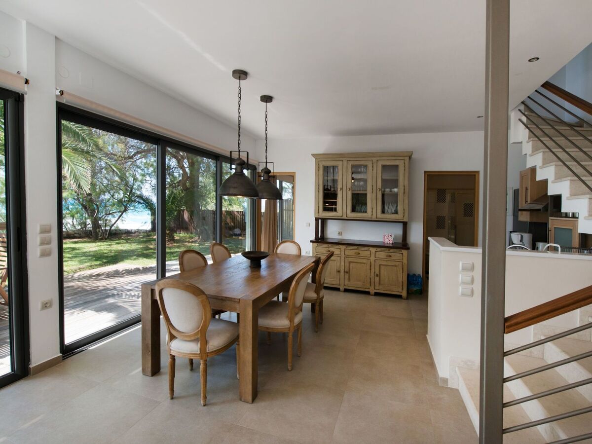 The first thing you notice when you enter this fantastic home is the spacious living room decorated with high quality furniture and large glass windows around that allow you to enjoy the infinite blue of the sea and the beauty of the Greek sky.