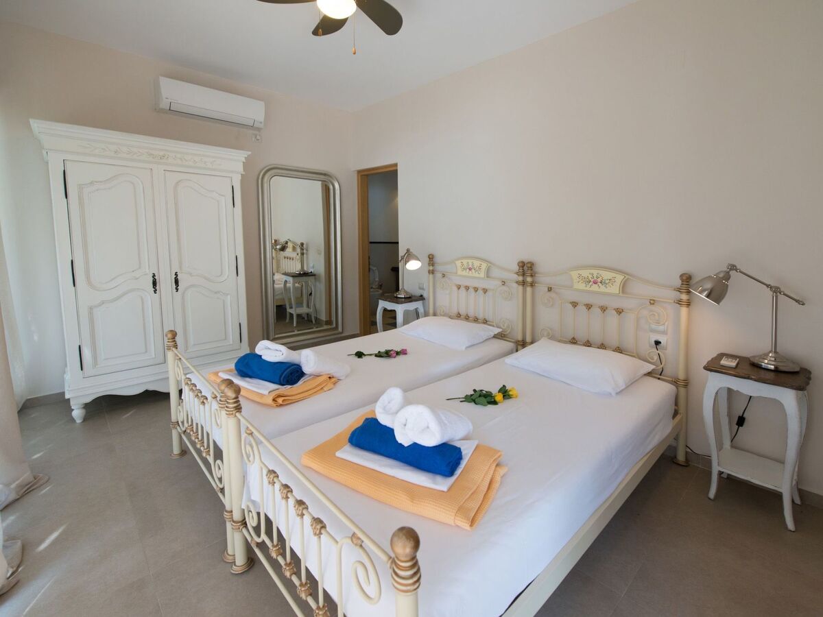Upstairs find two modern bedrooms with king size beds ,the bed positioning allows you to take in views of the Mediterranean and a beautiful sunsets from within the bed.