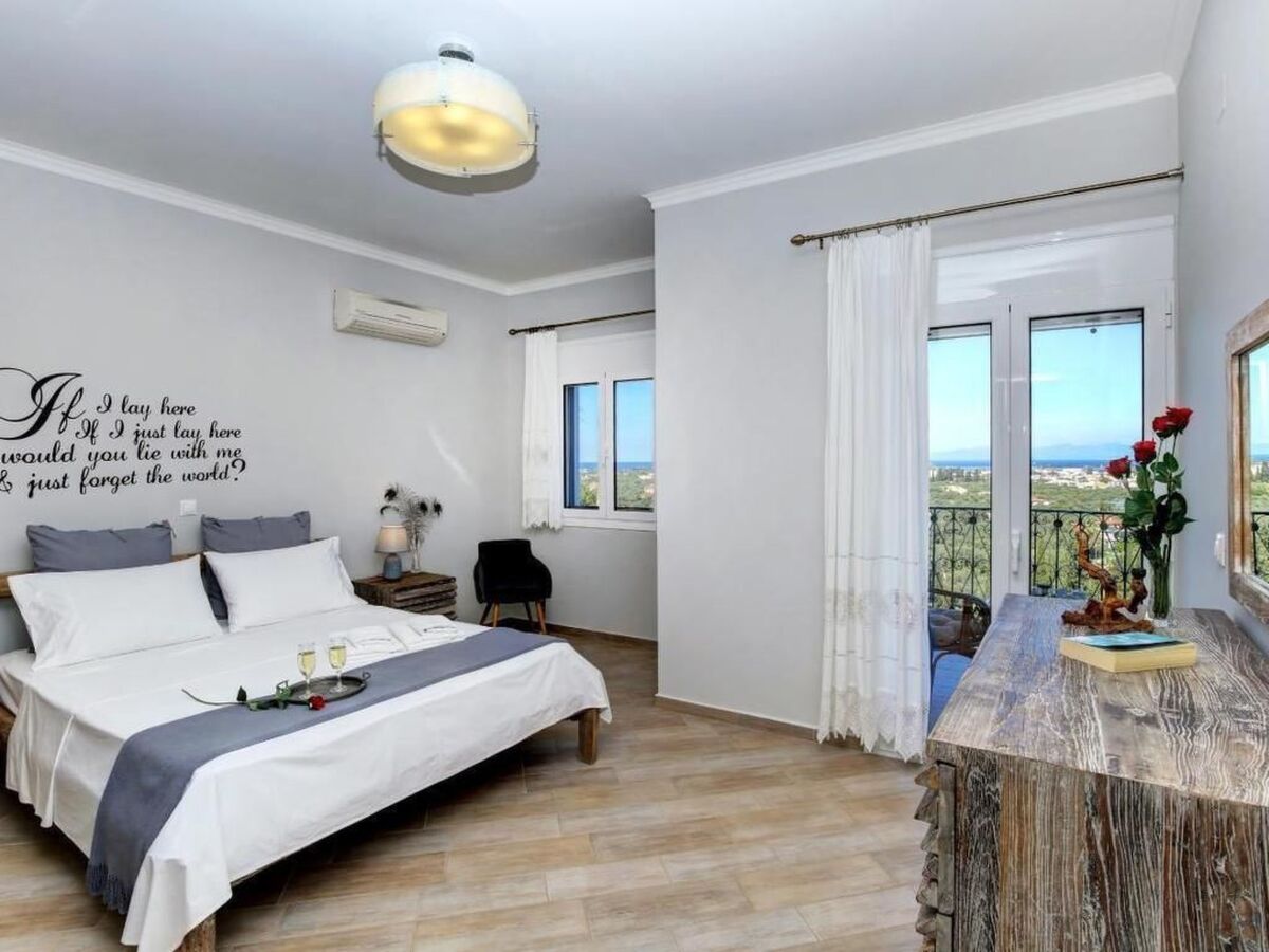 Master bedroom has a double bed and a balcony with a beautiful view over the Ionian sea.