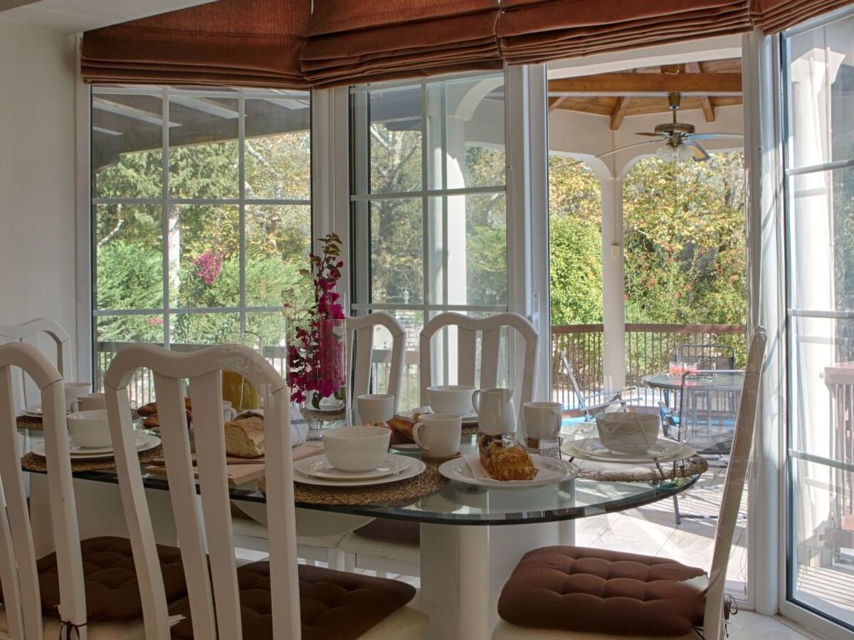 High bay windows and sliding doors from the dining area provide seamless access to the terrace, where guests can indulge in alfresco dining amidst privileged pool views.
