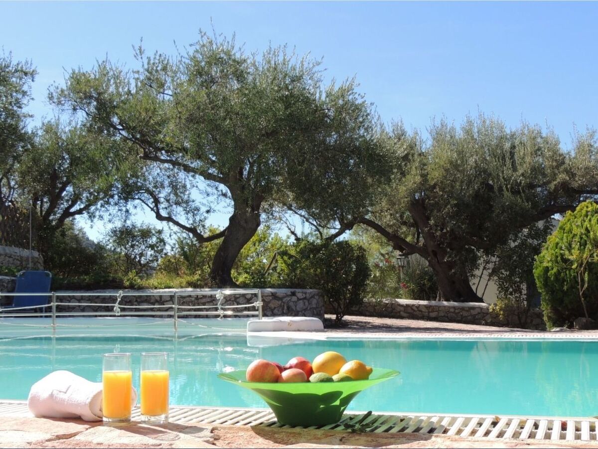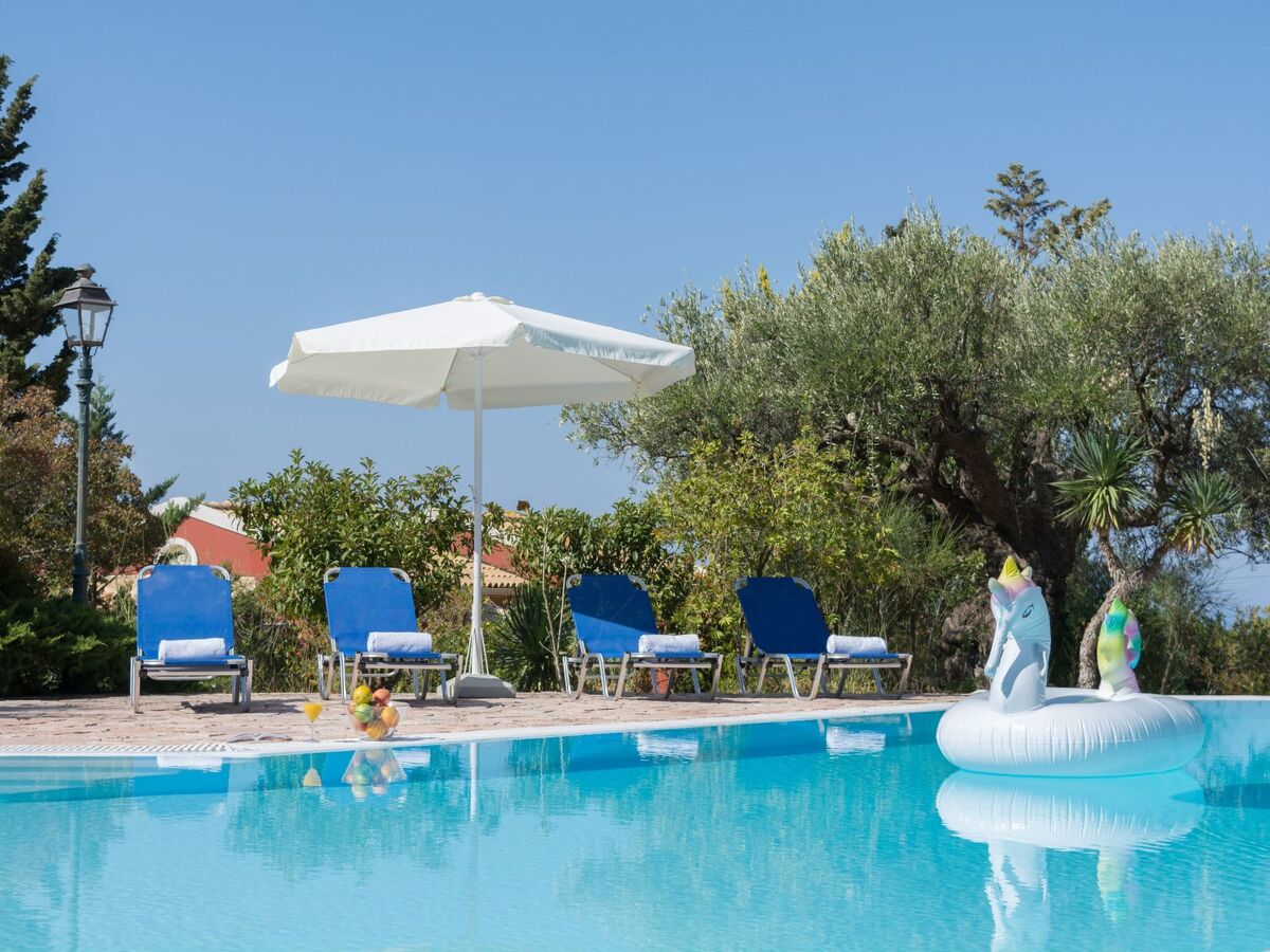 The villa shares a large swimming pool (12m x 6m, 0,8 -2,00 depth) with its jacuzzi and children's pool, available to all guests with ample space for sunbathing.