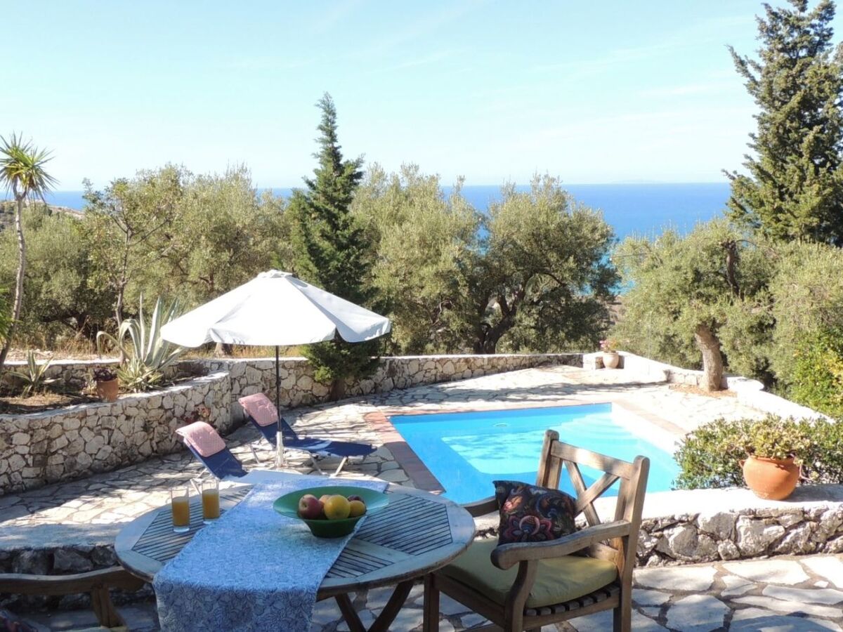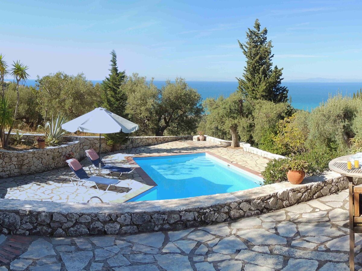 It has uninterrupted sea views and the pool and a shady umbrella to sit under and relax enjoying fresh coffee with breakfast whilst overlooking this view, and listening to the birds of prey "mewing" in the background above the hills.