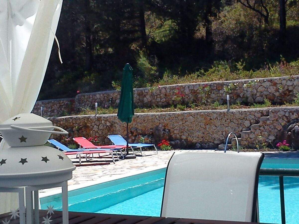 It has uninterrupted sea views a pool and a shady umbrella to sit under and relax enjoying fresh coffee with breakfast whilst overlooking this view, and listening to the birds of prey "mewing" in the background above the hills.
