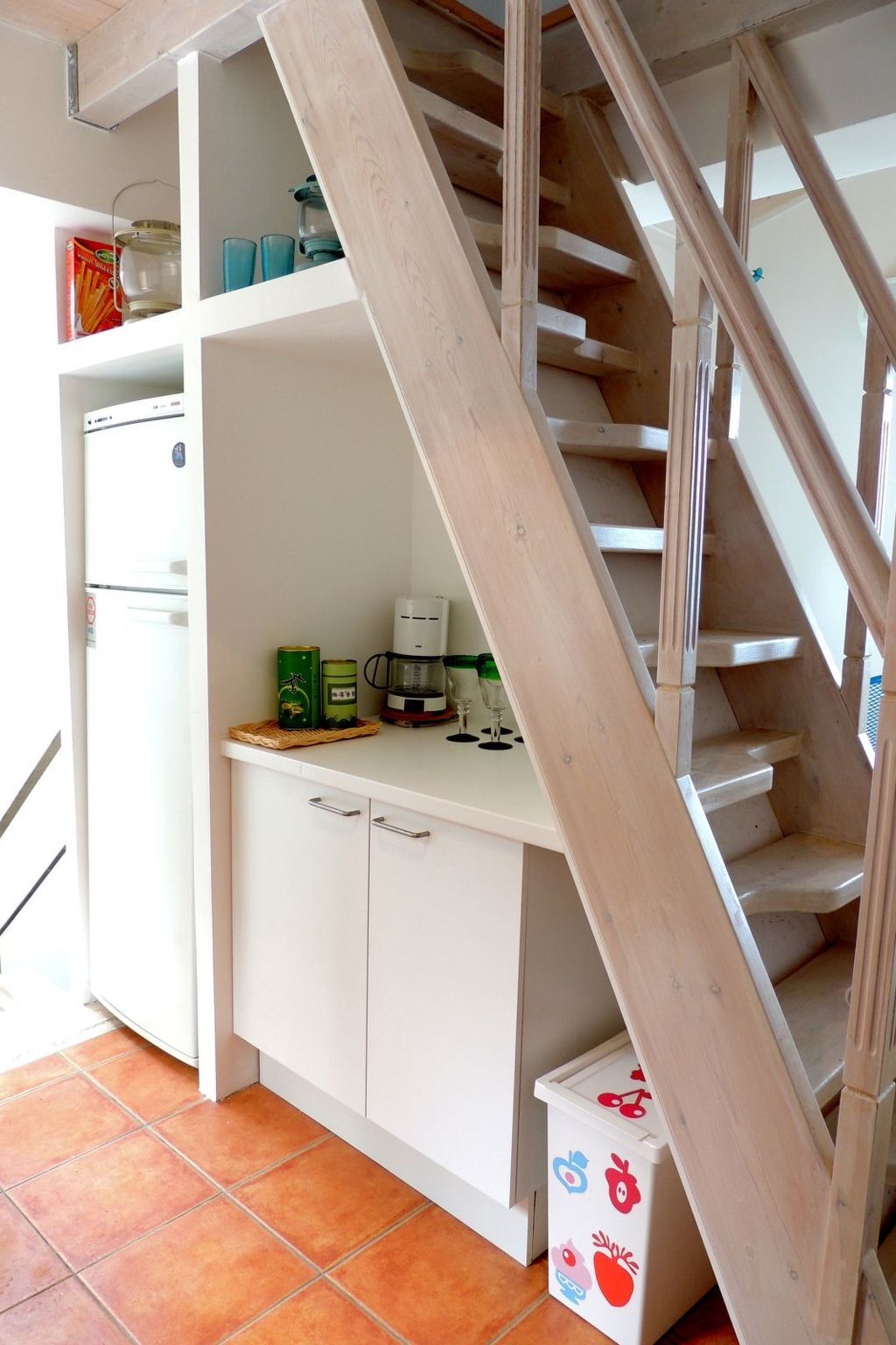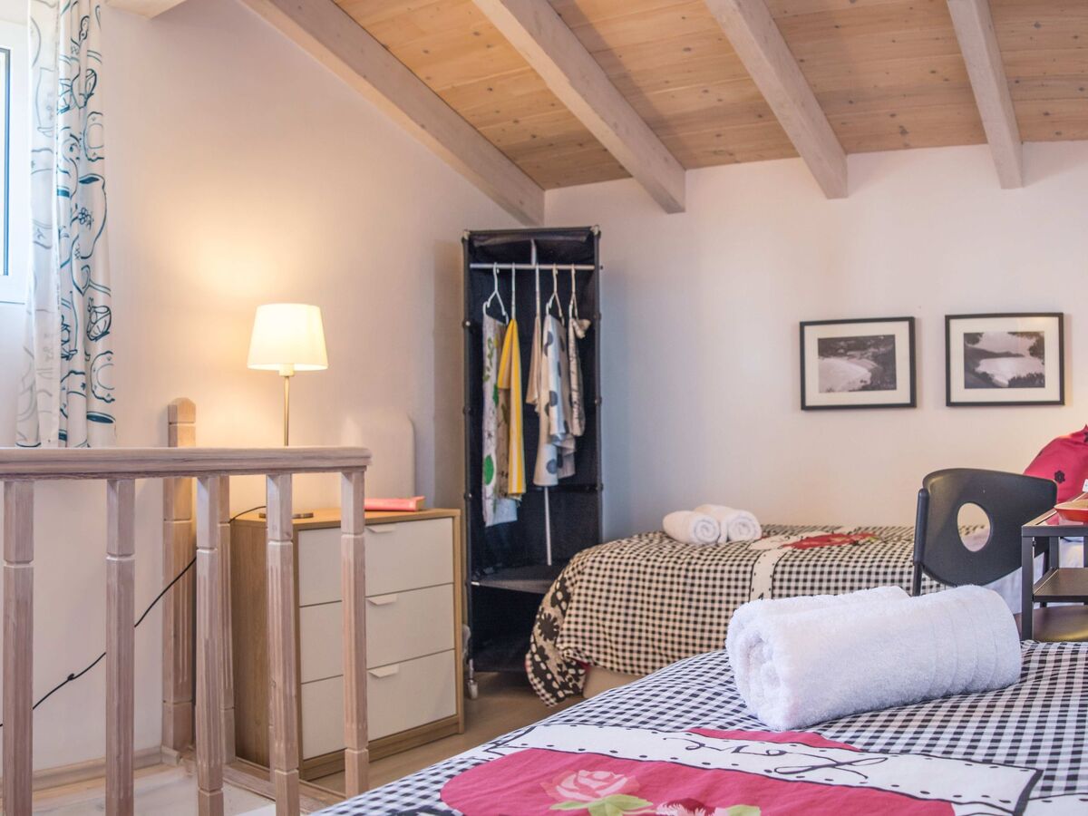 From the main level, an open staircase leads up to the attic ,as a third bedroom with two single beds.