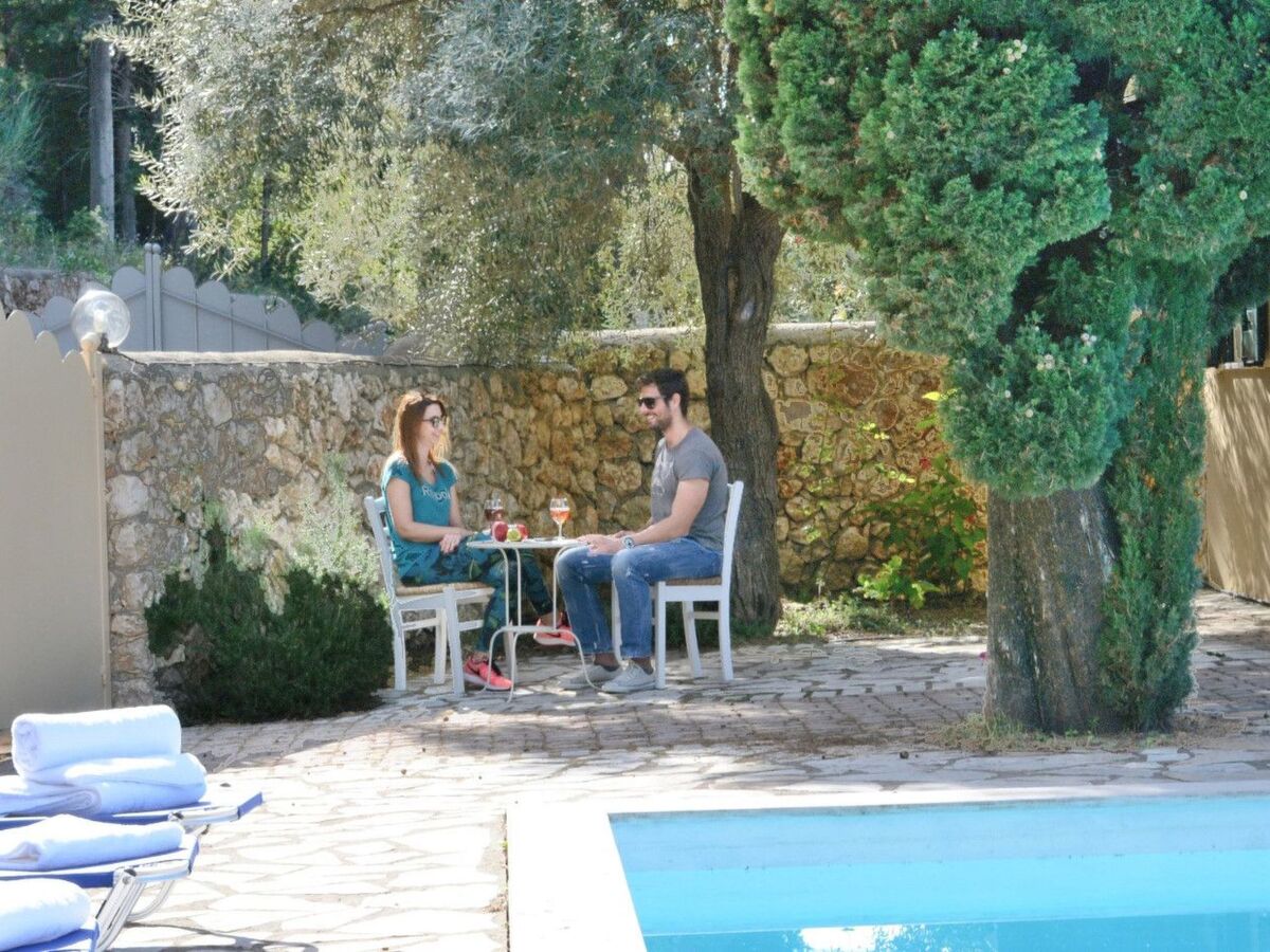 It has uninterrupted sea views a pool and a shady umbrella to sit under and relax enjoying fresh coffee with breakfast whilst overlooking this view, and listening to the birds of prey "mewing" in the background above the hills.