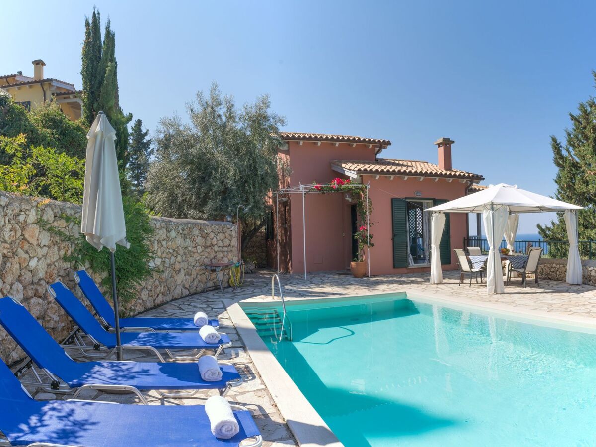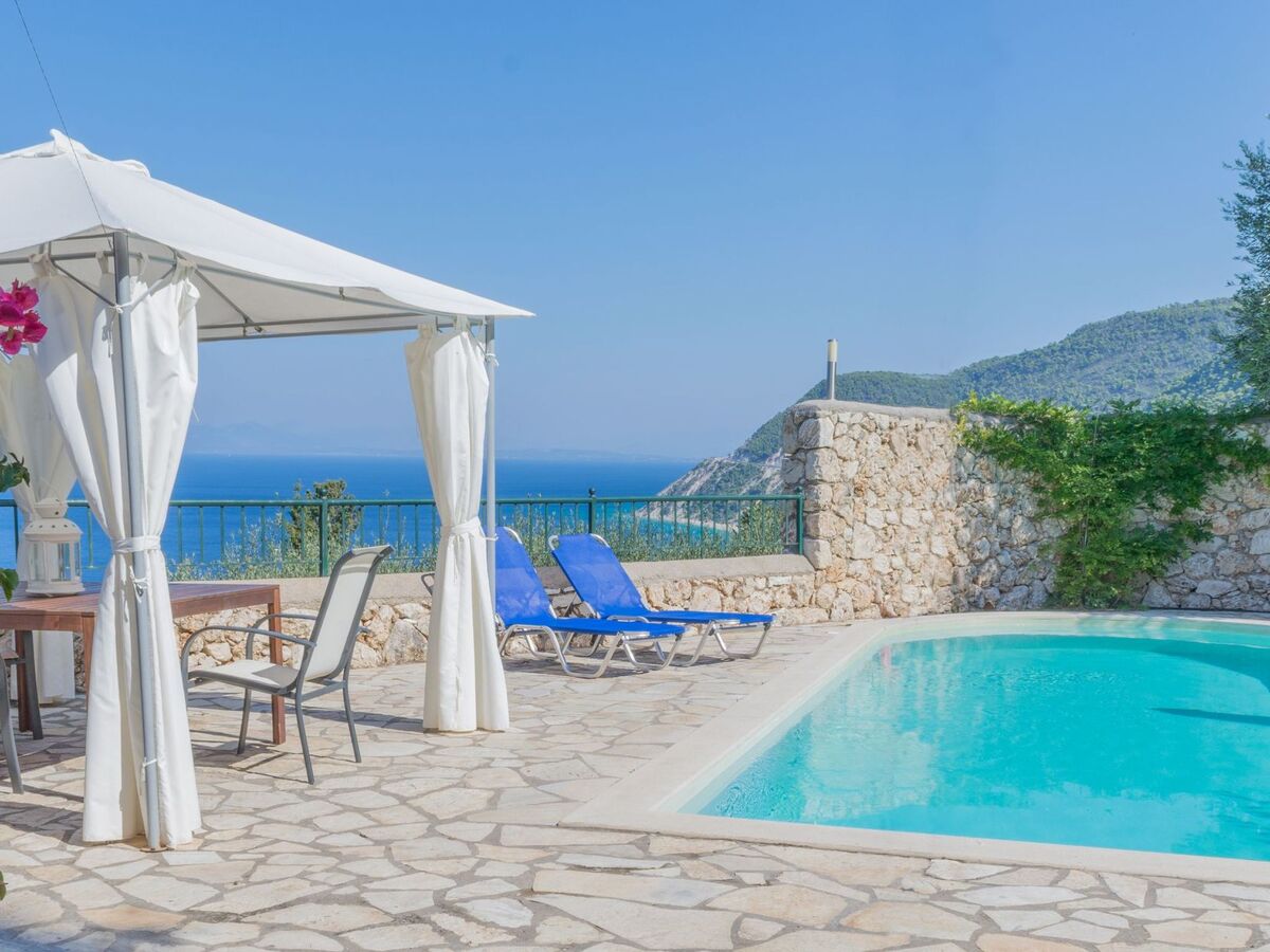 It has uninterrupted sea views a pool and a shady umbrella to sit under and relax enjoying fresh coffee with breakfast whilst overlooking this view, and listening to the birds of prey "mewing" in the background above the hills.
