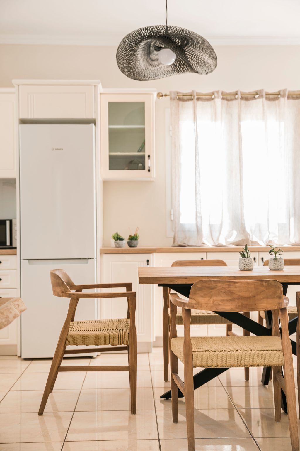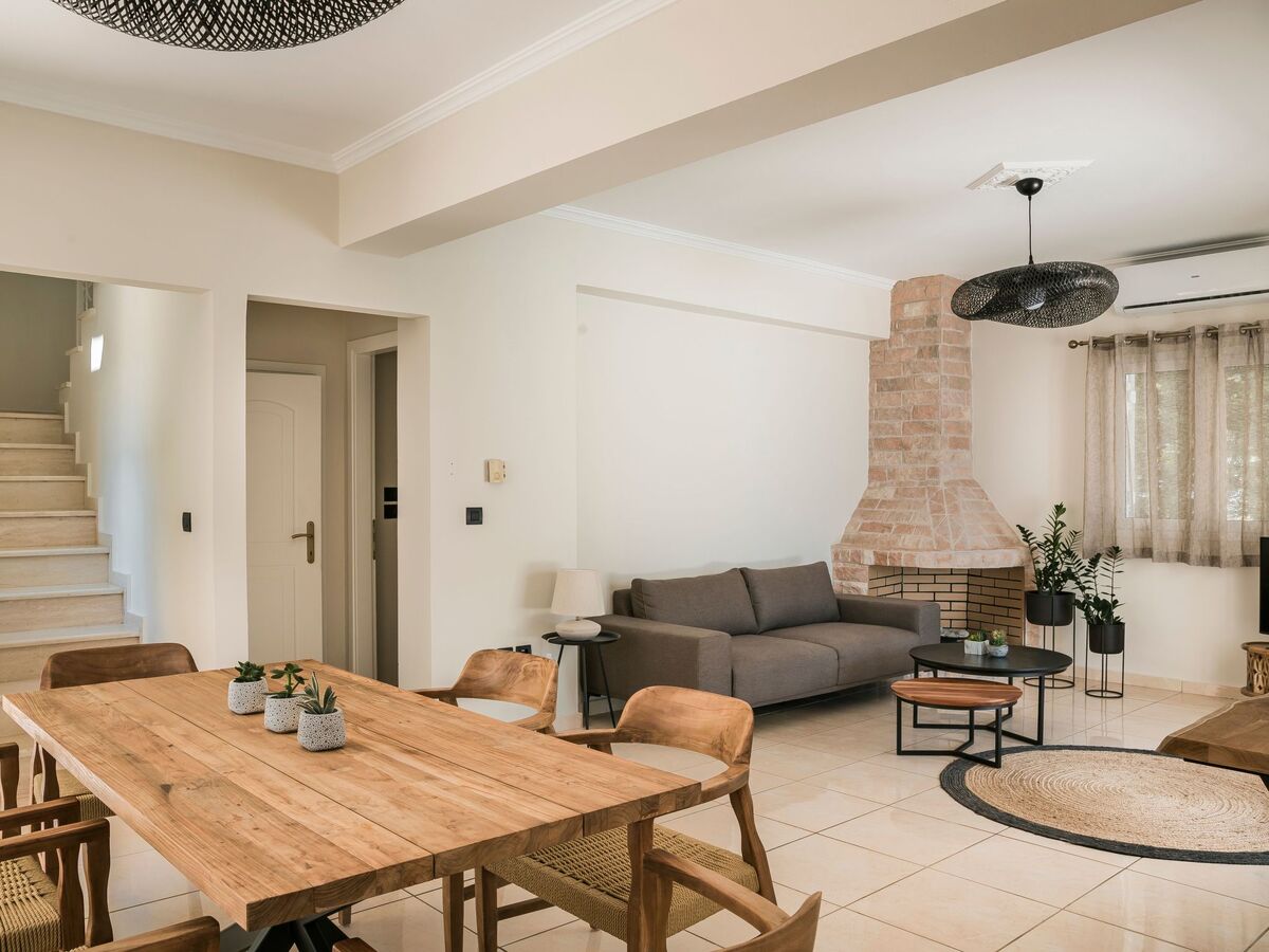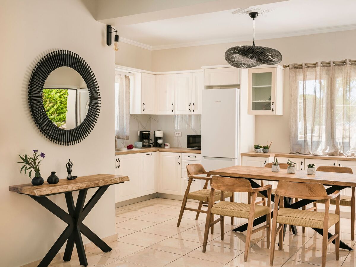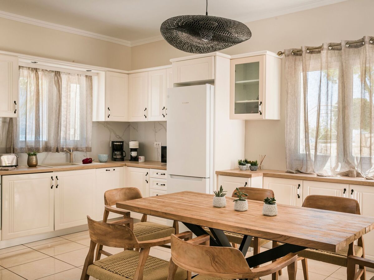 Villa Thalassa located in a unique location,offering amazing Seaviews and privacy, decorated in Boho style.Consists of two floors, on the ground floor located the fully equipped kitchen with oven / hobs, microwave, kettle, coffee maker, refrigerator / freezer, dishwasher, washing machine, also located the living room, cable TV,AC, balcony door who drives to swimming pool area, there is also a guest w/c ,as well as a bedroom with Double King size bed (1.60m),wardrobe, A / C, ensuite bathroom with washbasin,toilet,shower.On the first floor located bedroom with Double King size bed (1.60m), closet, A/C,ensuite bathroom with washbasin,shower,toilet.