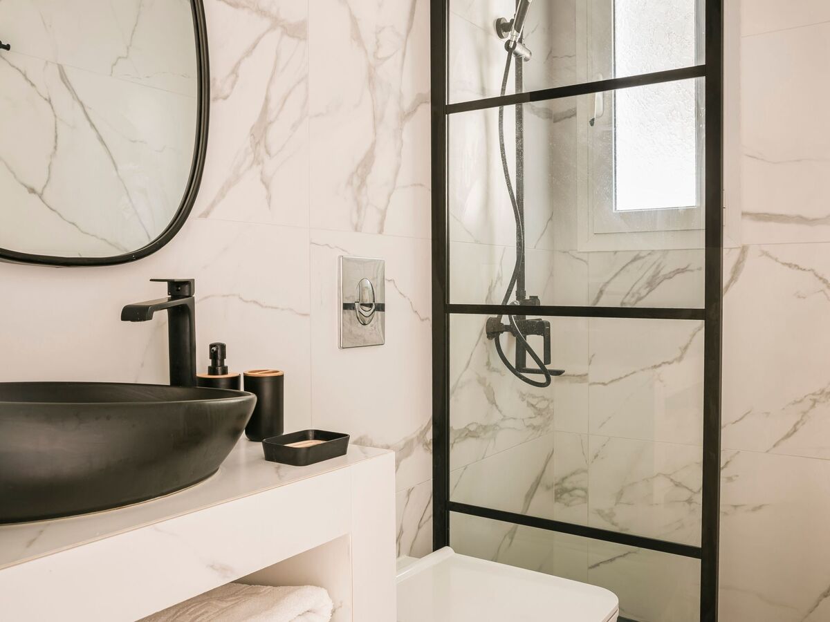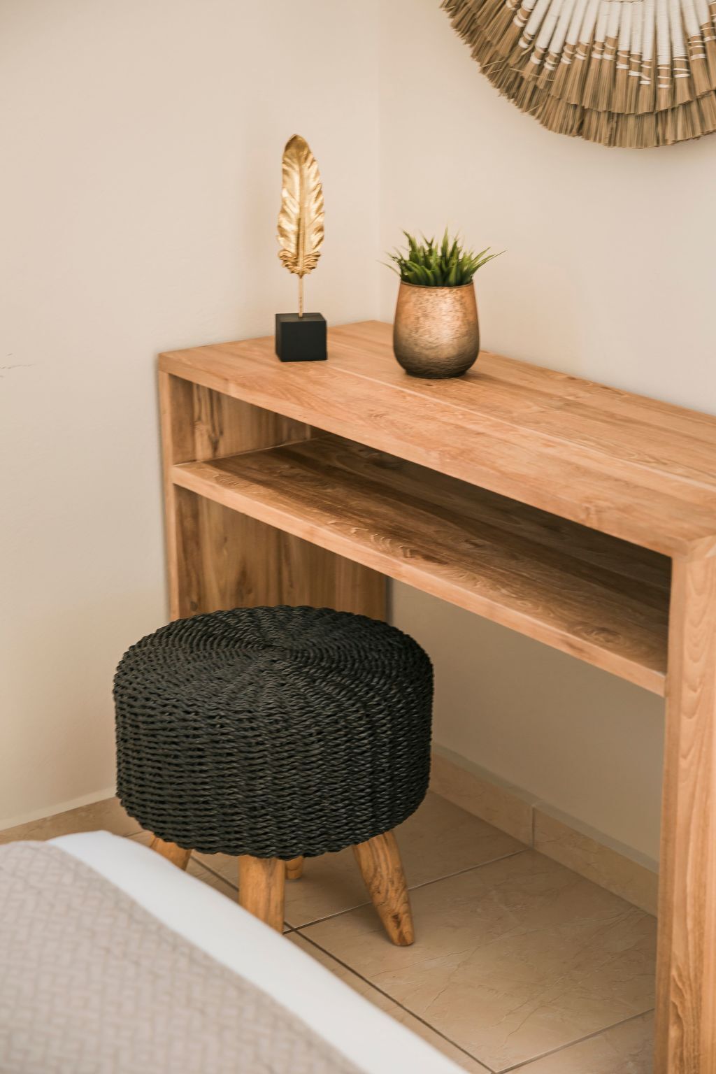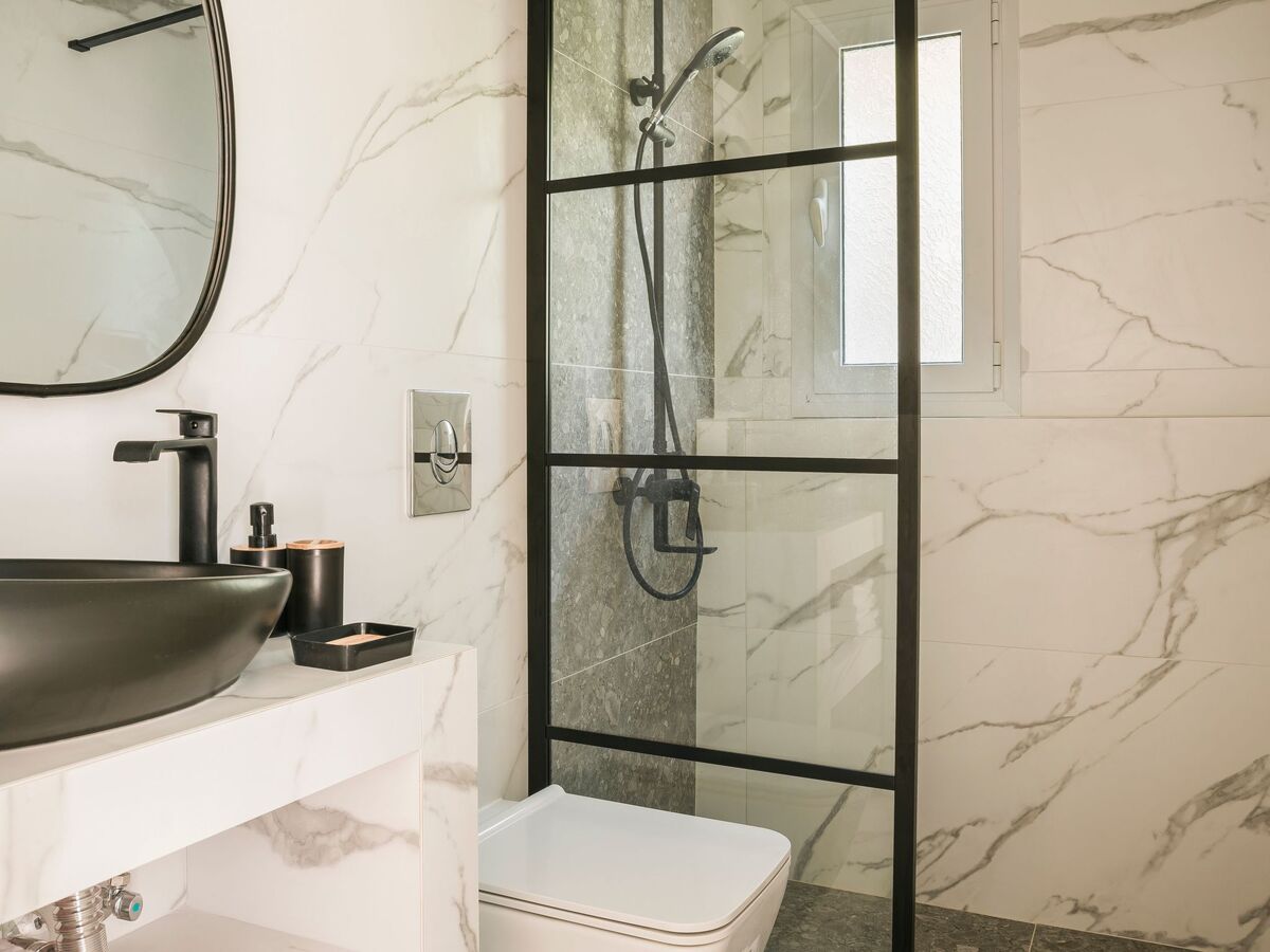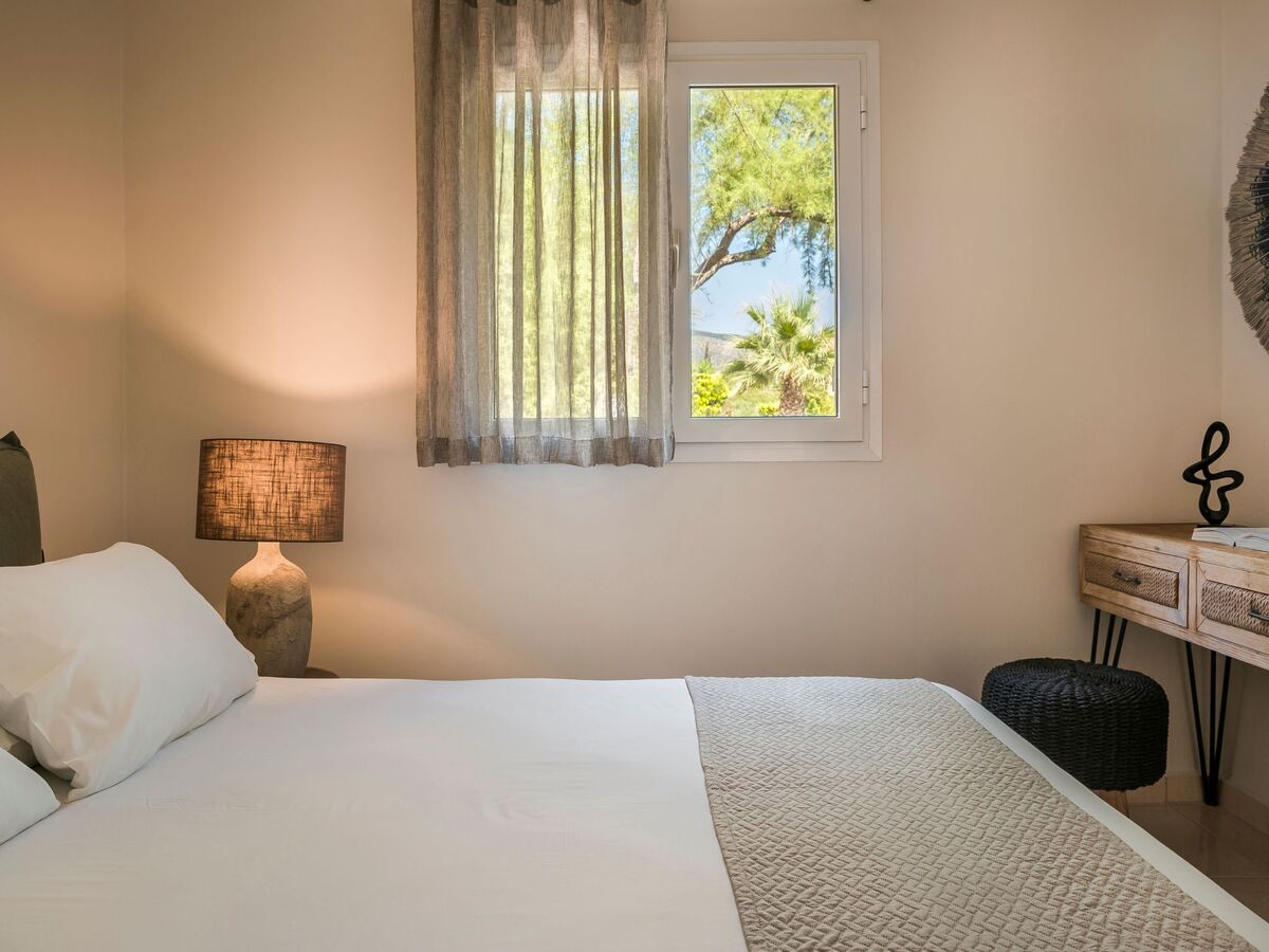 Villa Thalassa located in a unique location,offering amazing Seaviews and privacy, decorated in Boho style.Consists of two floors, on the ground floor located the fully equipped kitchen with oven / hobs, microwave, kettle, coffee maker, refrigerator / freezer, dishwasher, washing machine, also located the living room, cable TV,AC, balcony door who drives to swimming pool area, there is also a guest w/c ,as well as a bedroom with Double King size bed (1.60m),wardrobe, A / C, ensuite bathroom with washbasin,toilet,shower.On the first floor located bedroom with Double King size bed (1.60m), closet, A/C,ensuite bathroom with washbasin,shower,toilet.