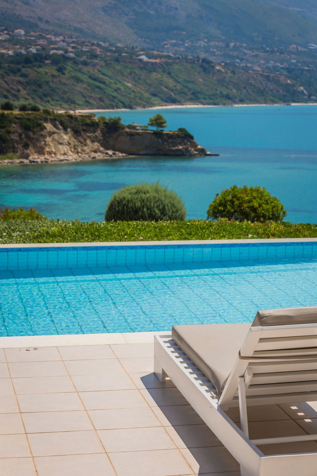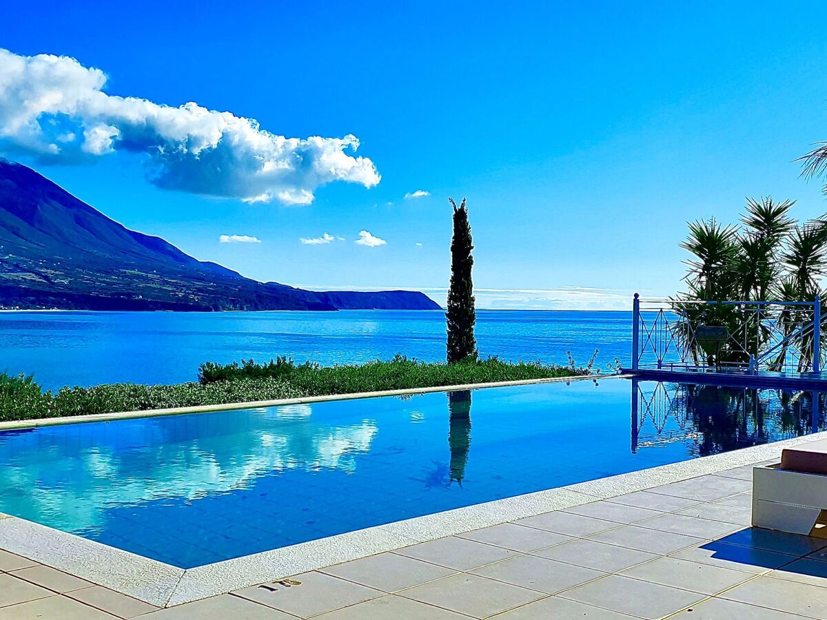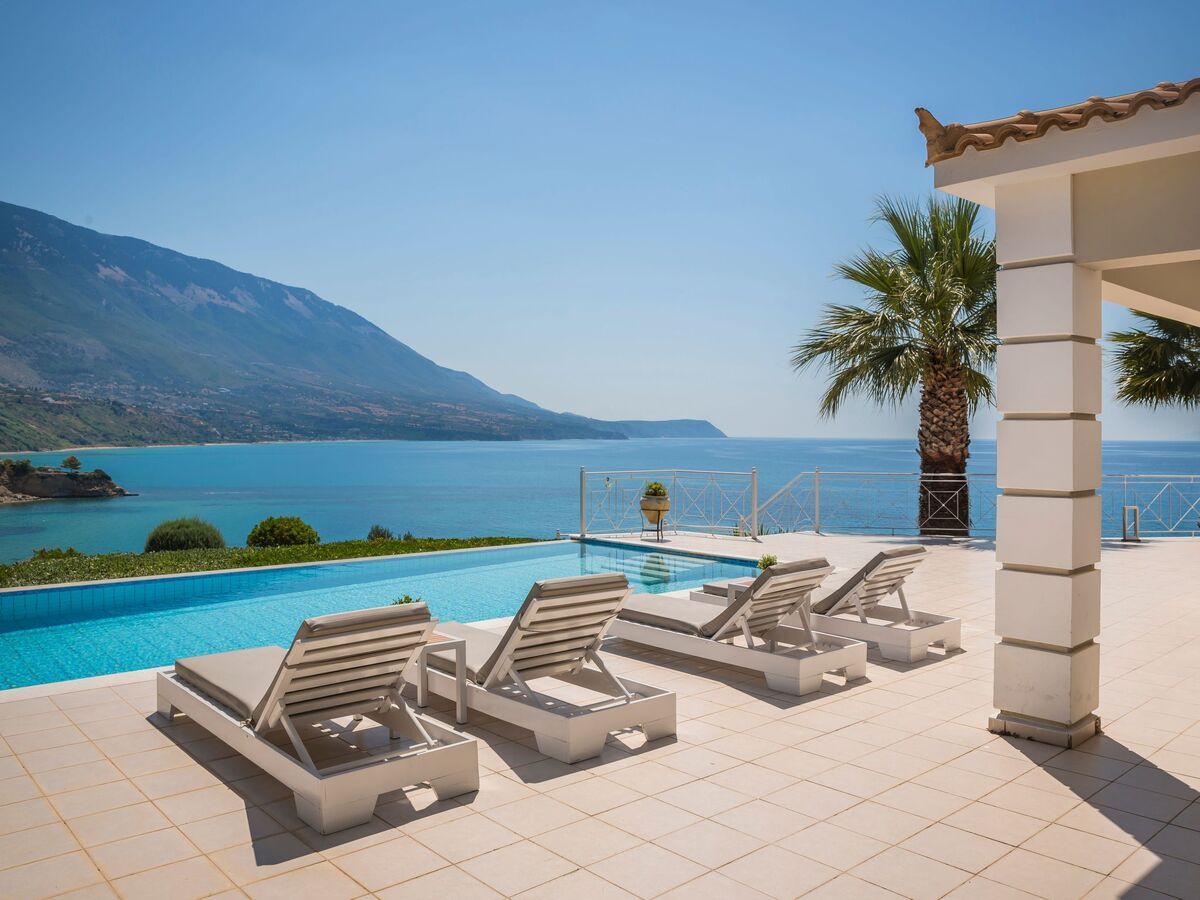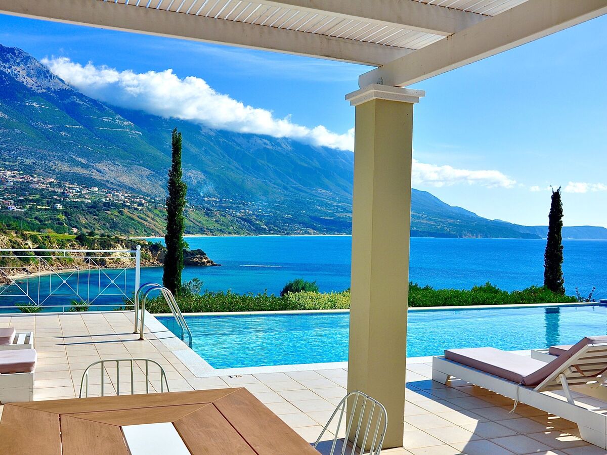 Outdoor located the private swimming pool(infinity), pergola with dining area, sun loungers, built in BBQ.What characterizes villa Thalassa is the Spectacular Seaviews,privacy,comforts.