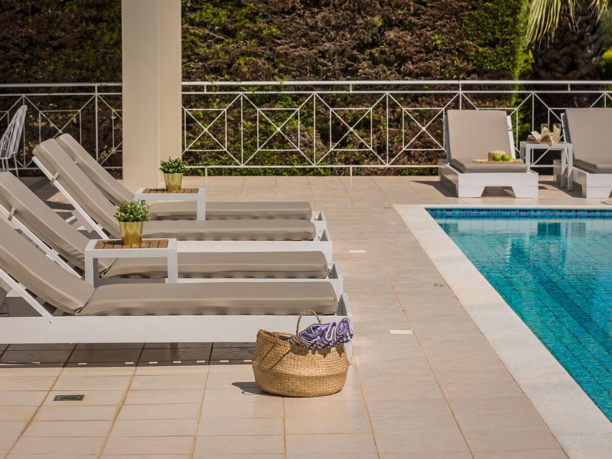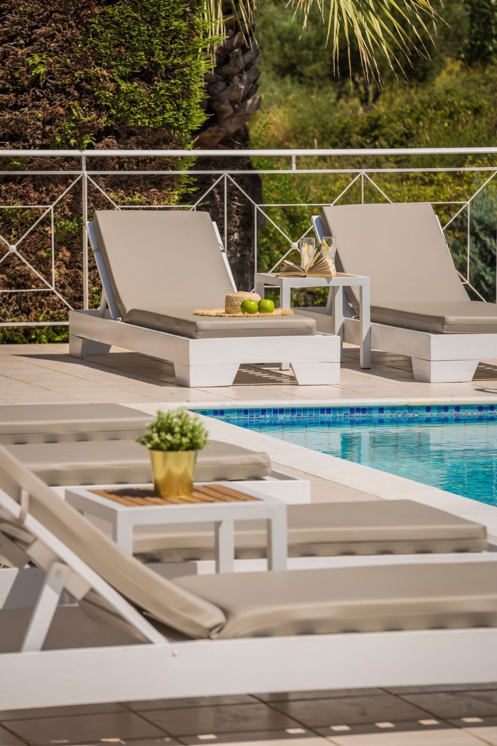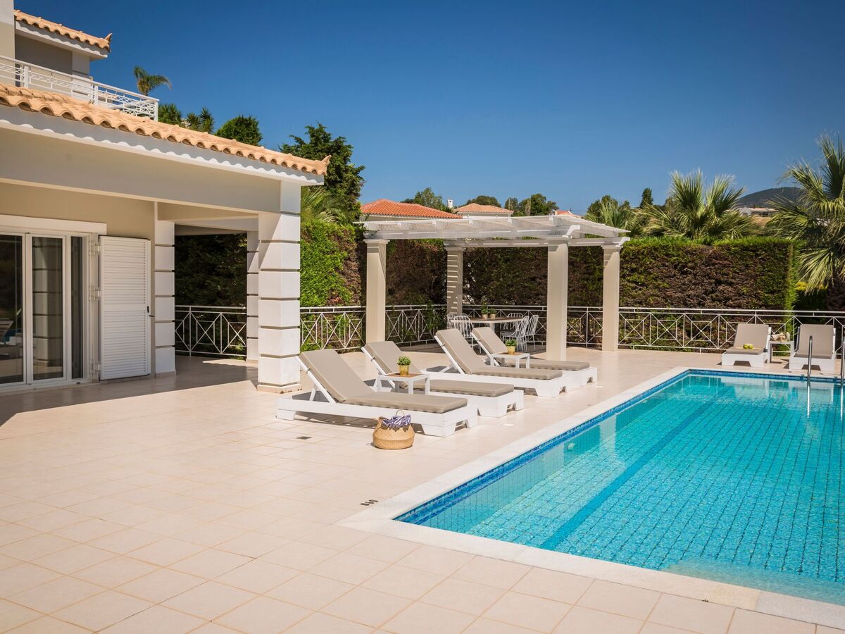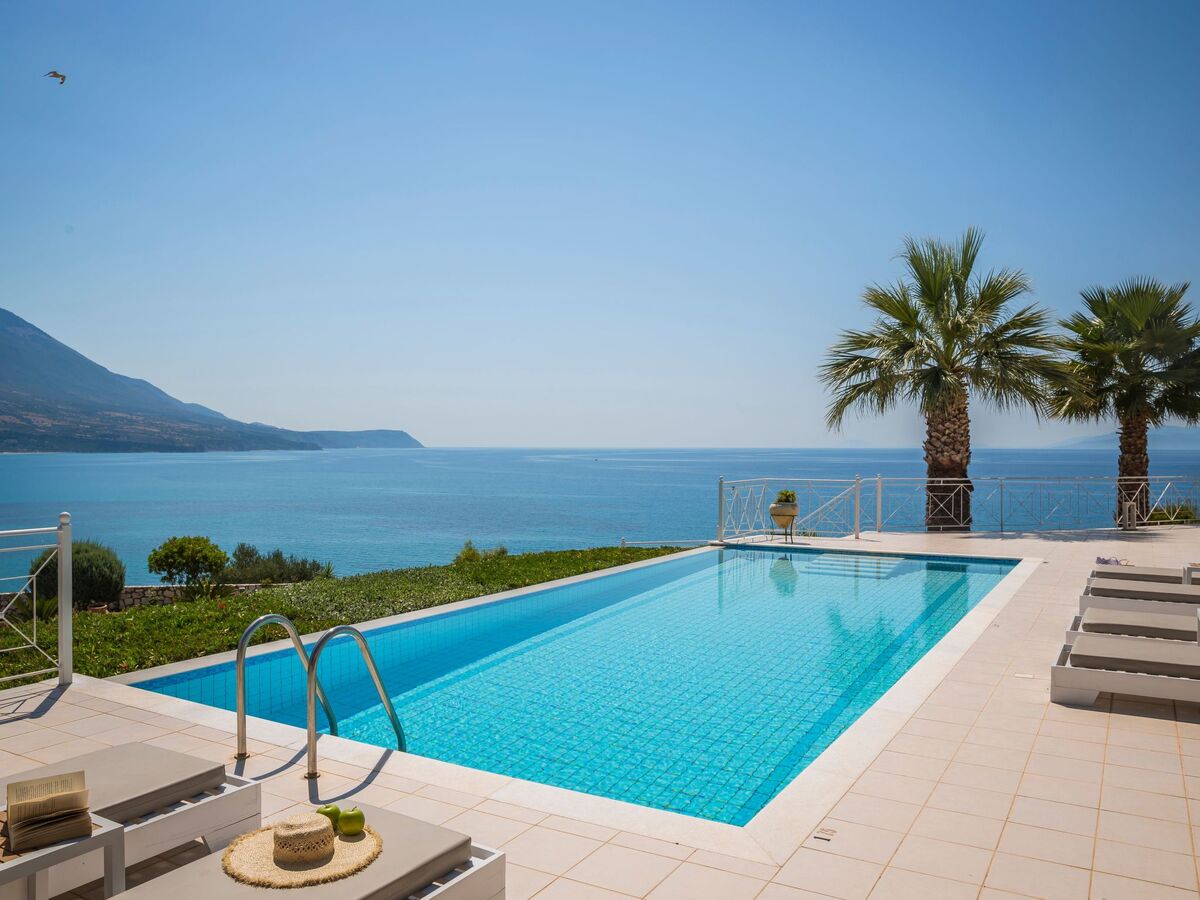Outdoor located the private swimming pool(infinity), pergola with dining area, sun loungers, built in BBQ.What characterizes villa Thalassa is the Spectacular Seaviews,privacy,comforts.
