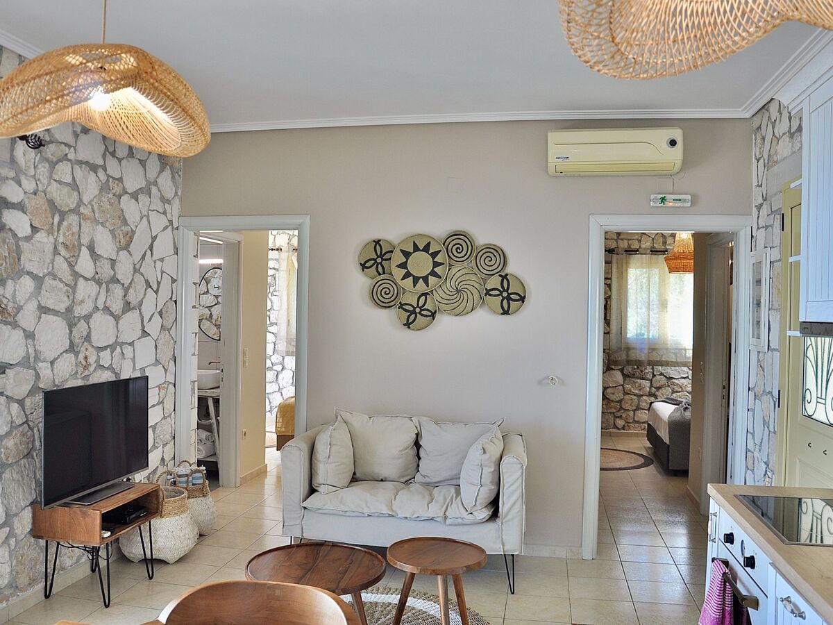 Stone Villa located in a unique property front of the sea,offers unique seaviews and fully privacy.Ground floor building,constructed by the Ionian traditional way with stones that have been collected from the wider area, decorated with boho chic elements, consists of:Kitchen / Living room, fully equipped kitchen with oven / hob, microwave, refrigerator / freezer, dishwasher, washing machine, kettle, toaster, coffee maker.