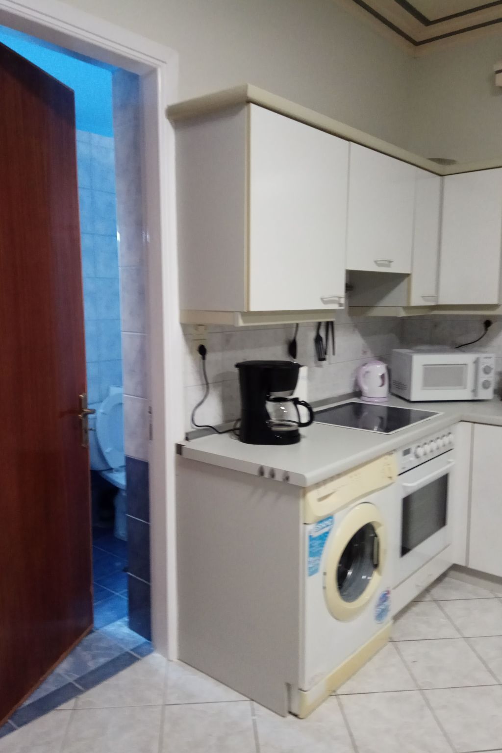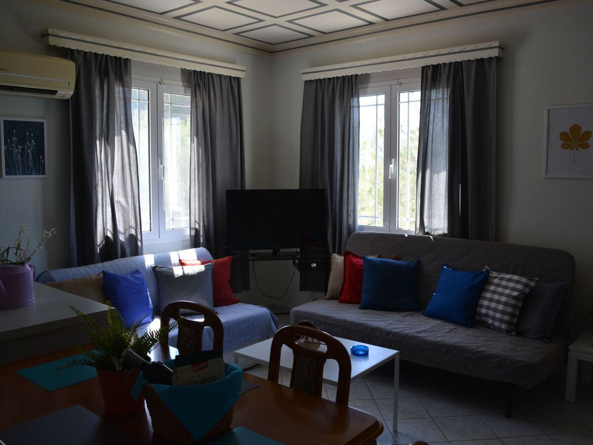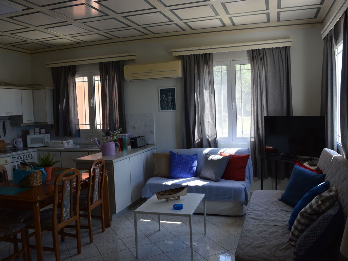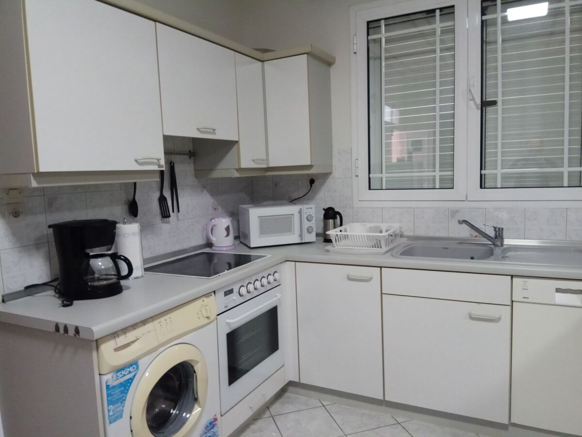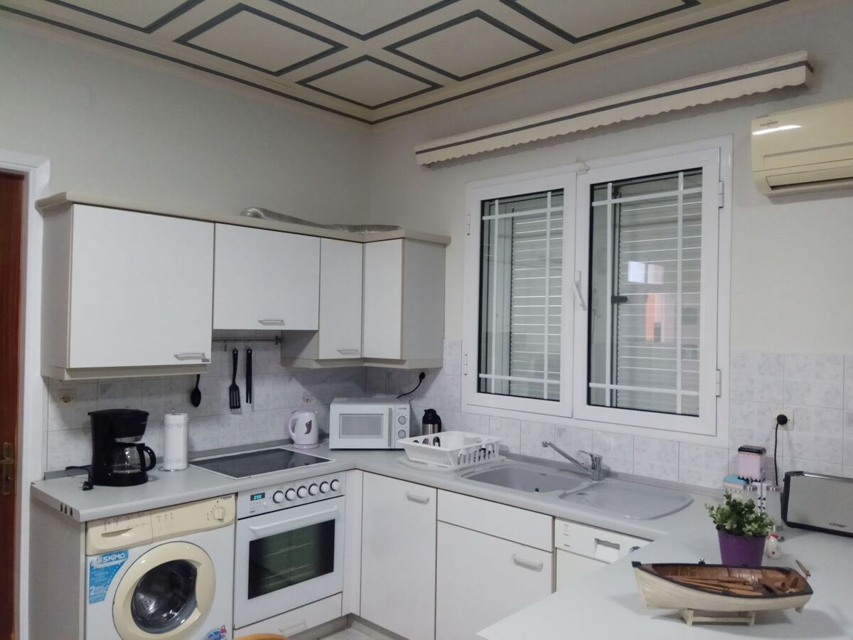 Kitchen (kitchen with a oven, stove, microwave, toaster,kettle, etc.) Bathroom (a bathroom with a shower.) Living area ( A living room with greek chanels and some satellite channels ).