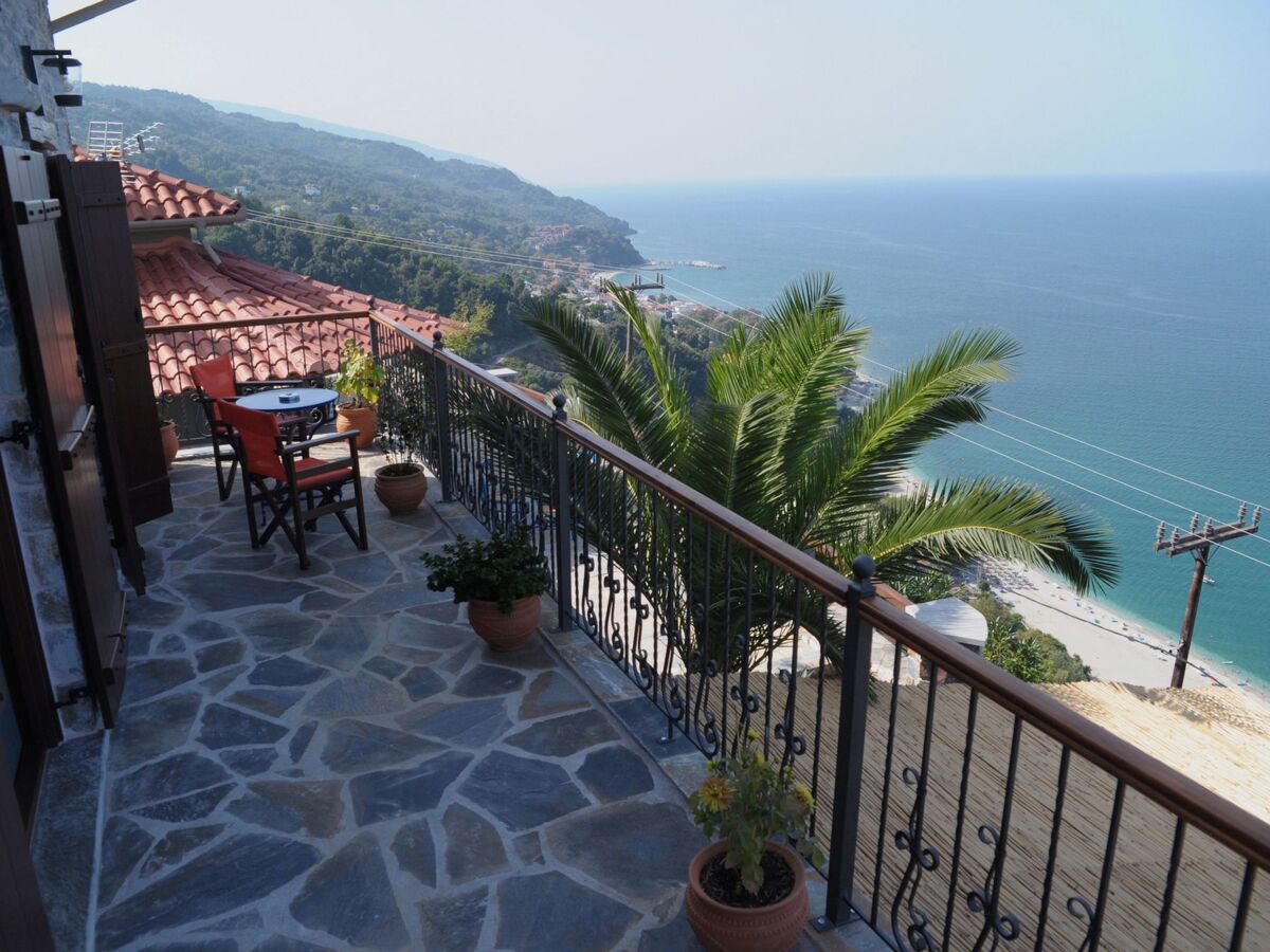 It is surrounded by green mountains and at the same time 2 km from the transparent Aegean Sea.