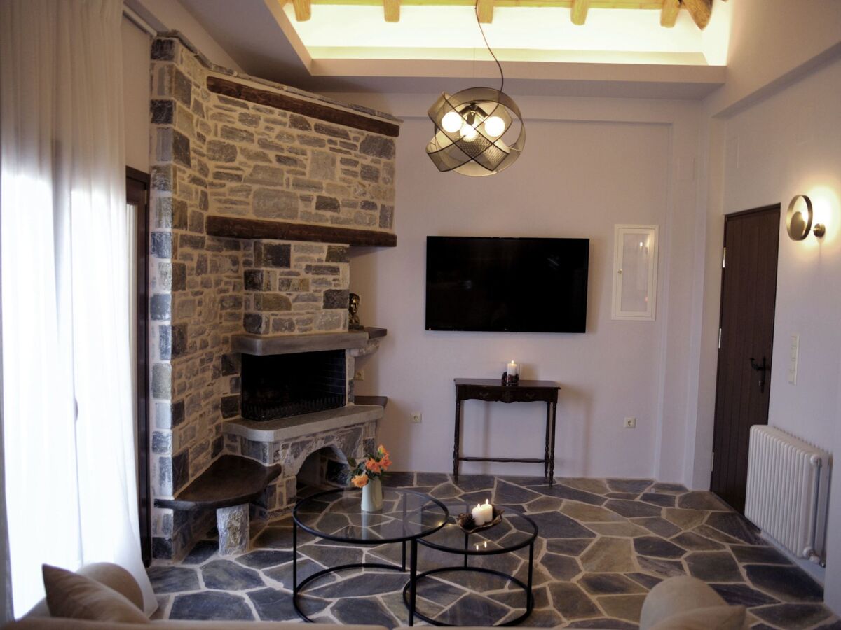The villa is built of stone in 2021 in the foothills of Pelion, Greece.