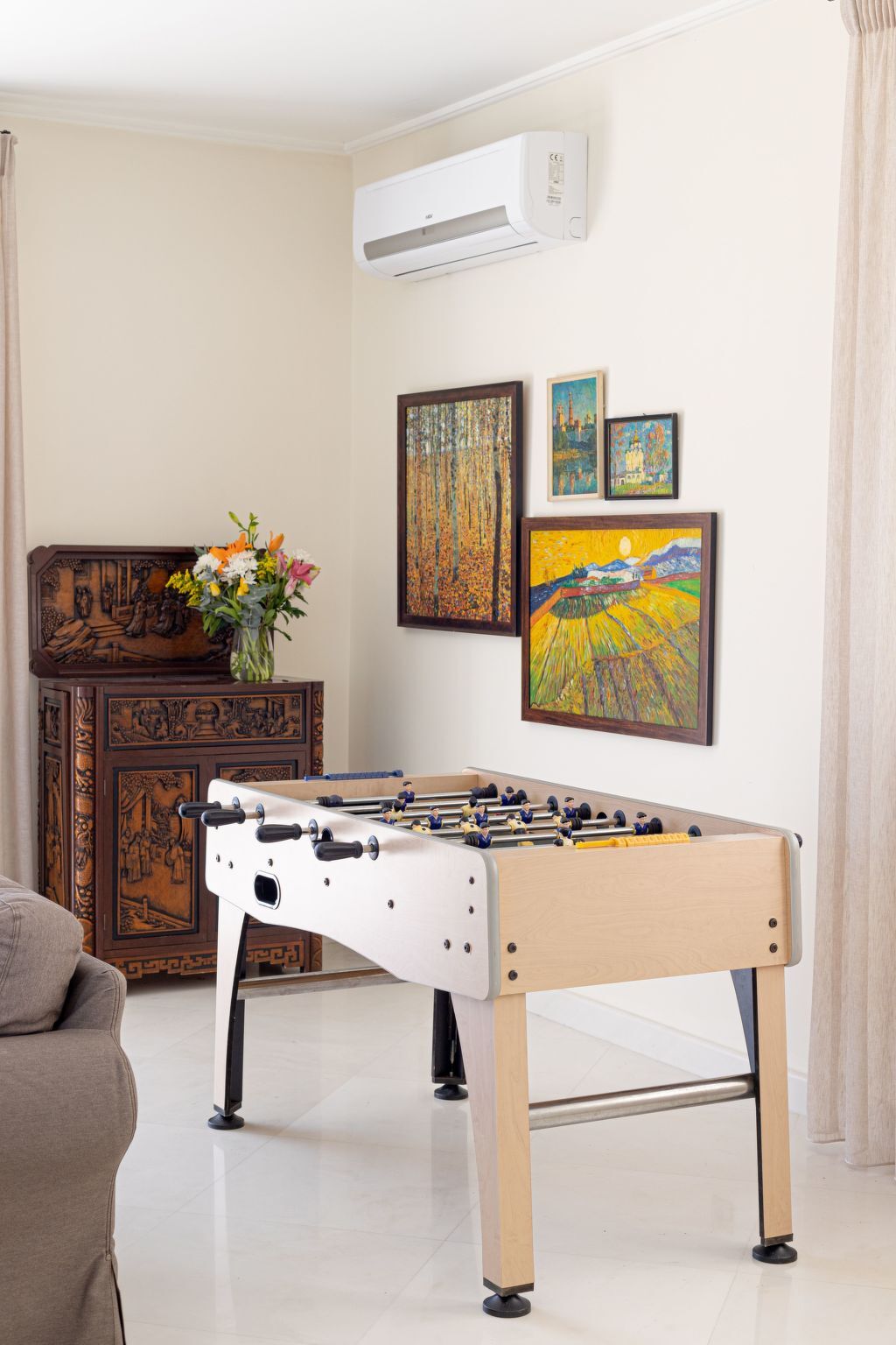 Indoors, you’ll find a sauna, billiards room, grand piano, table football, and even a wine cellar, offering something for every mood and occasion.