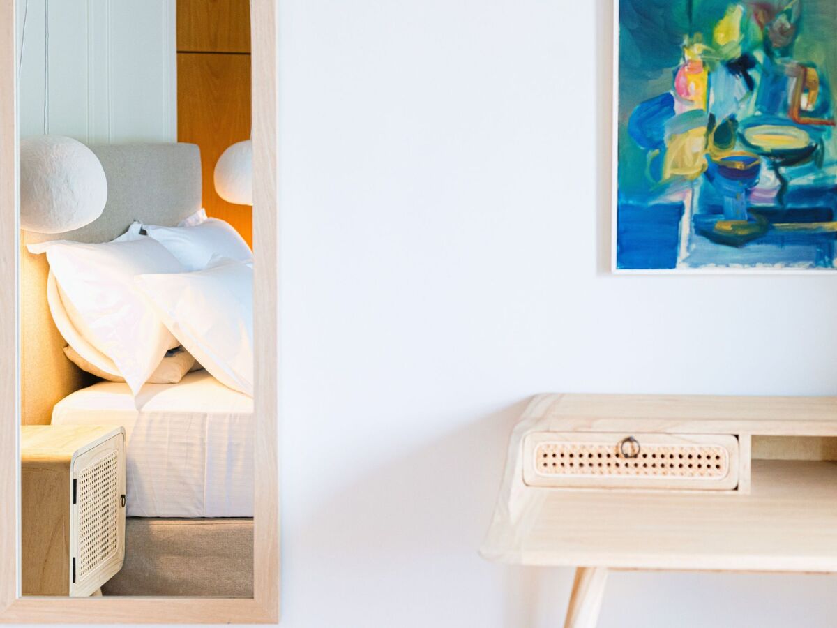 A dedicated workspace with a desk, computer, and a 65” smart TV makes the villa suitable for remote work or business retreats, balancing productivity with relaxation.