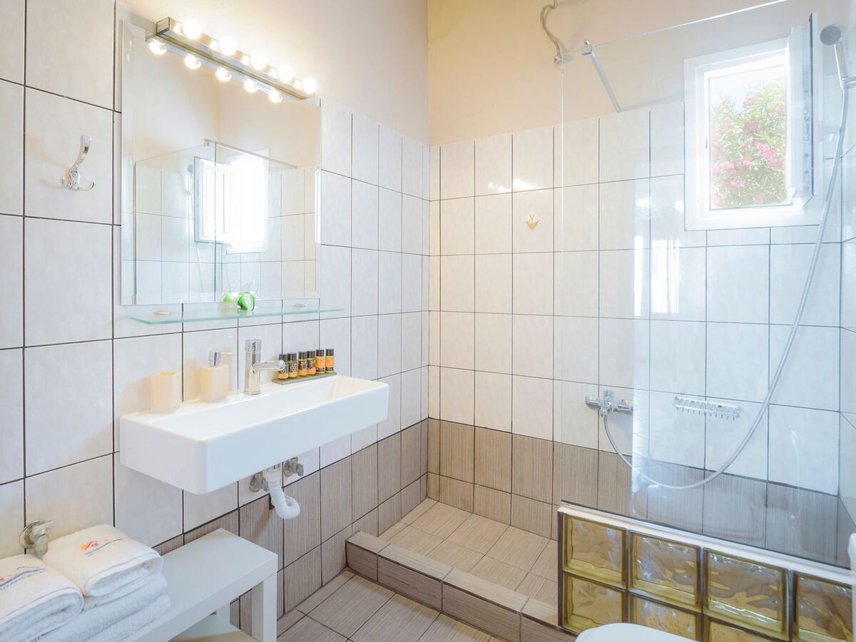 The first bedroom features a double bed, a big closet and a boudoir and has access to a balcony with great view to the Aegean Sea and the surrounding nature.