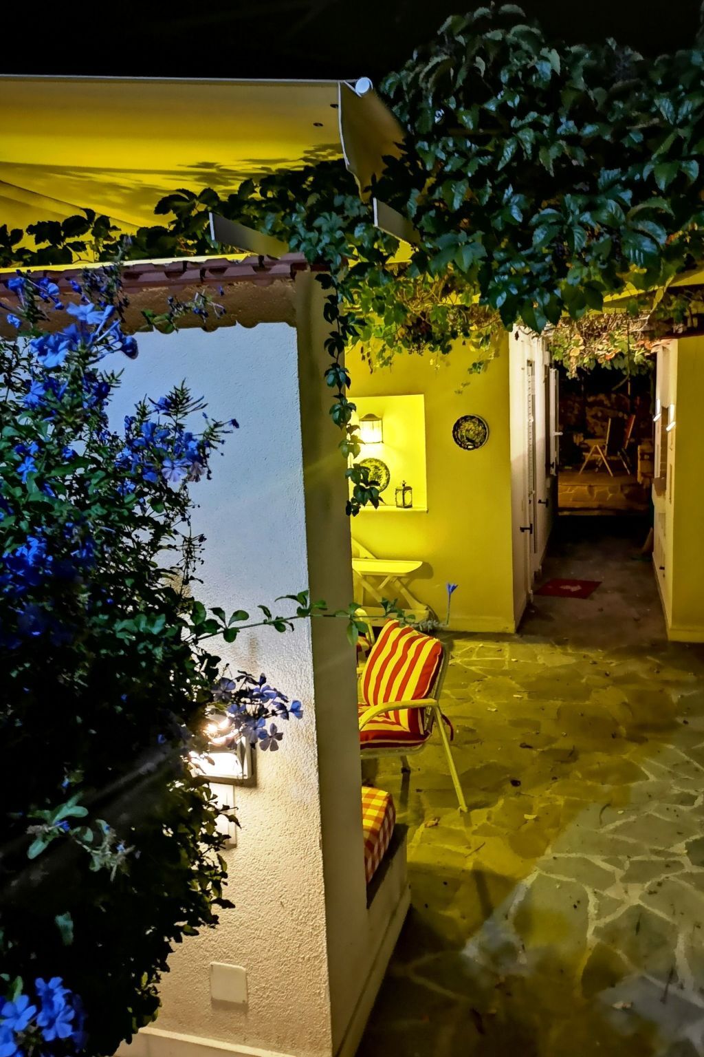 On cooler evenings, the fireplace creates a cosy atmosphere, while the air conditioning system provides pleasant cooling on hot days.