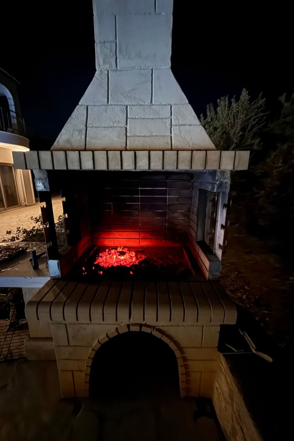 Extensive grounds surround the villa, enveloped by the serene beauty of around 50 private olive trees, pines, and fruit trees.