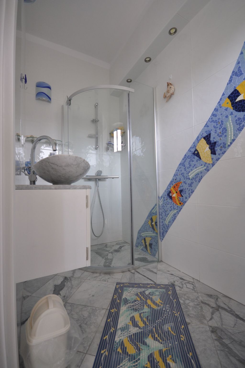 The first floor houses 4 spacious bedrooms, each with air conditioning, private bathrooms and spacious balconies offering breathtaking sea views.
