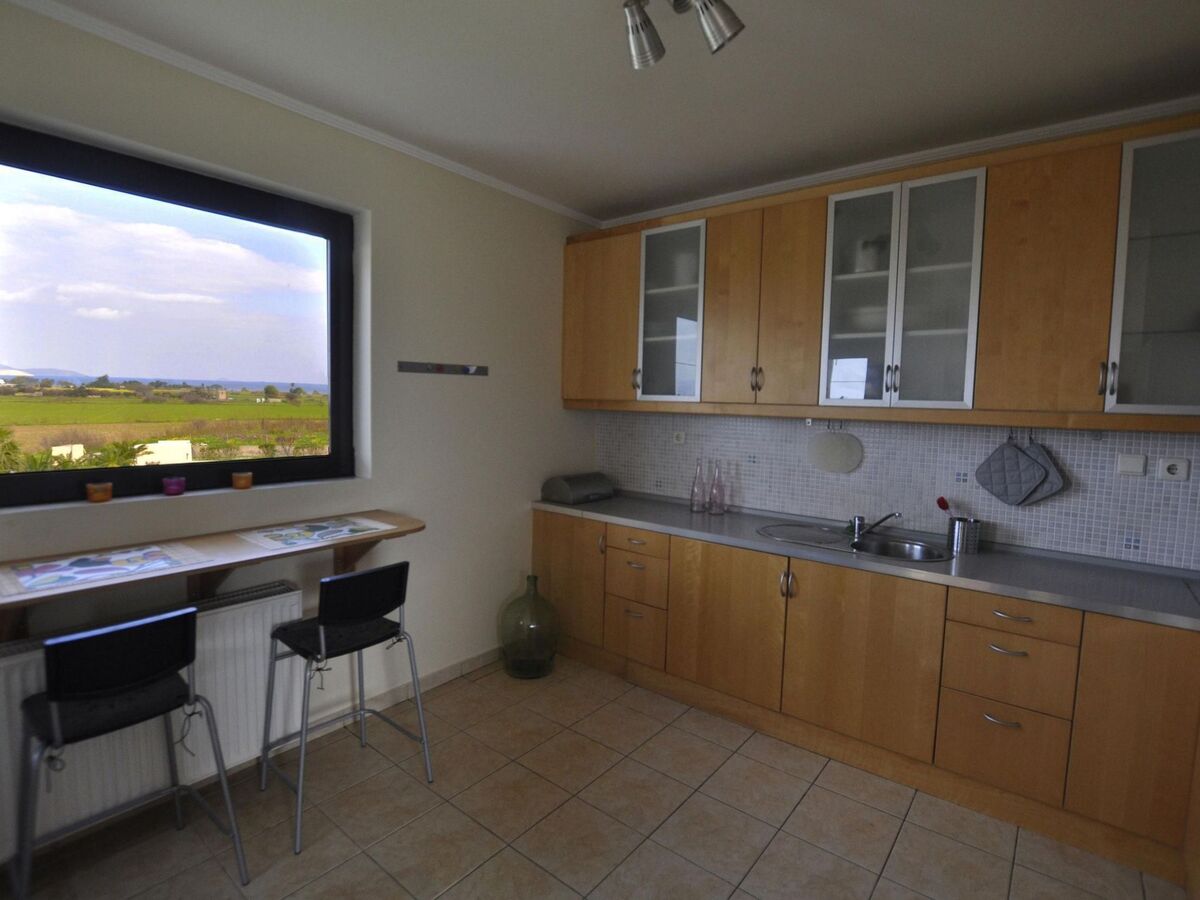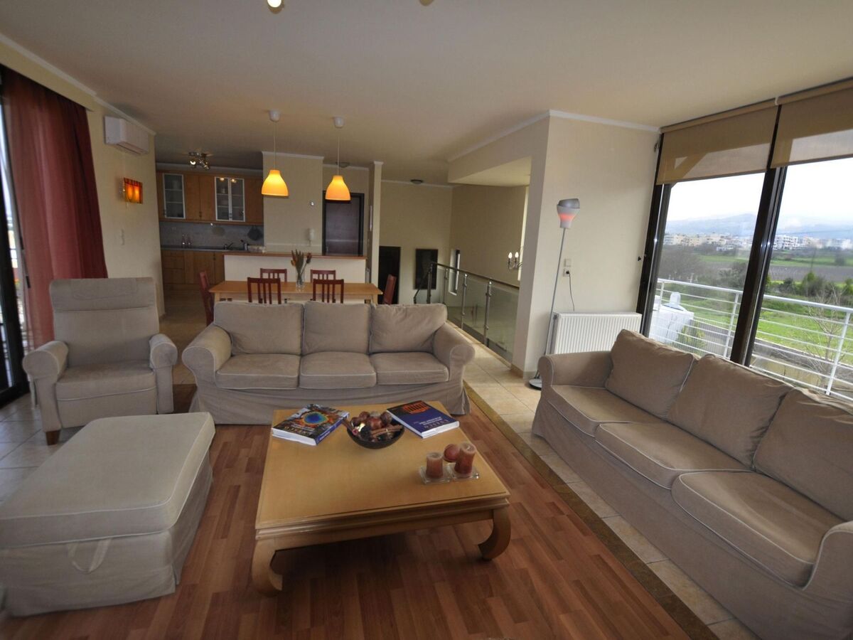 There are two big windows (3 x 2 metres) on the south side of the living room, with a view of the biggest mountain on the island, Dikaios.