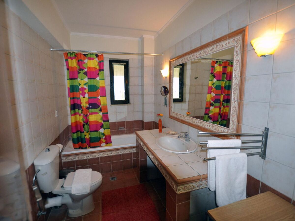 There is also a big bathroom with a bath.