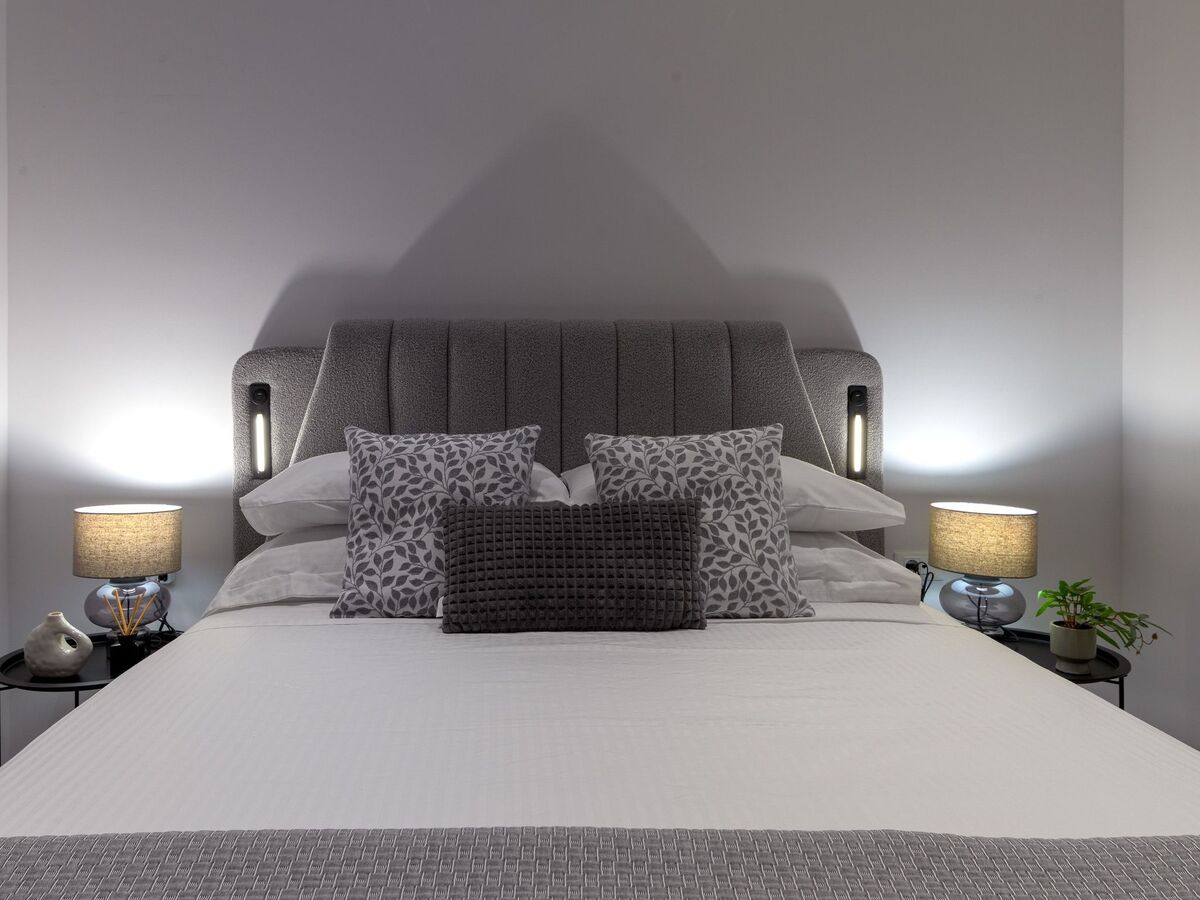 The main bedroom has its own ensuite bathroom and is furnished with a king size bed.