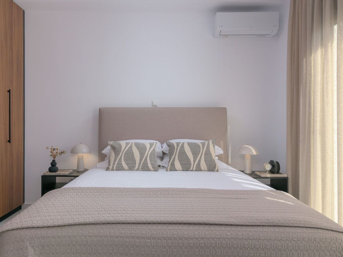 Villa Galini, a contemporary Greek Villa comprising 3 spacious bedrooms beautifully furnished with quality bed linen, plush mattresses, cosy pillows and fluffy towels.