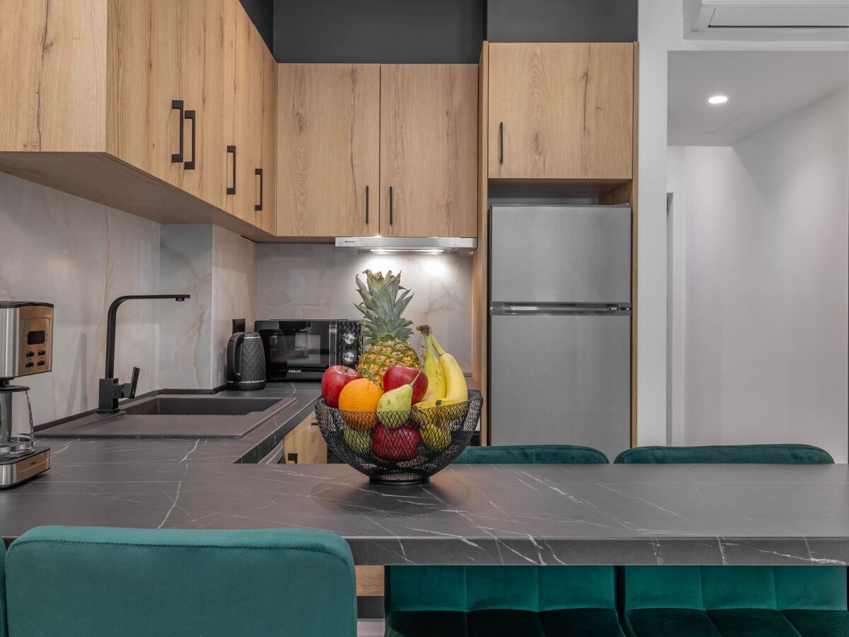 The fully equipped kitchen allows guests to prepare their own meals with ease, offering all the necessary appliances and utensils for a comfortable stay.