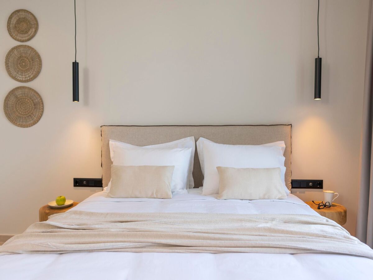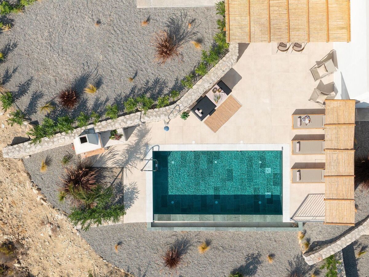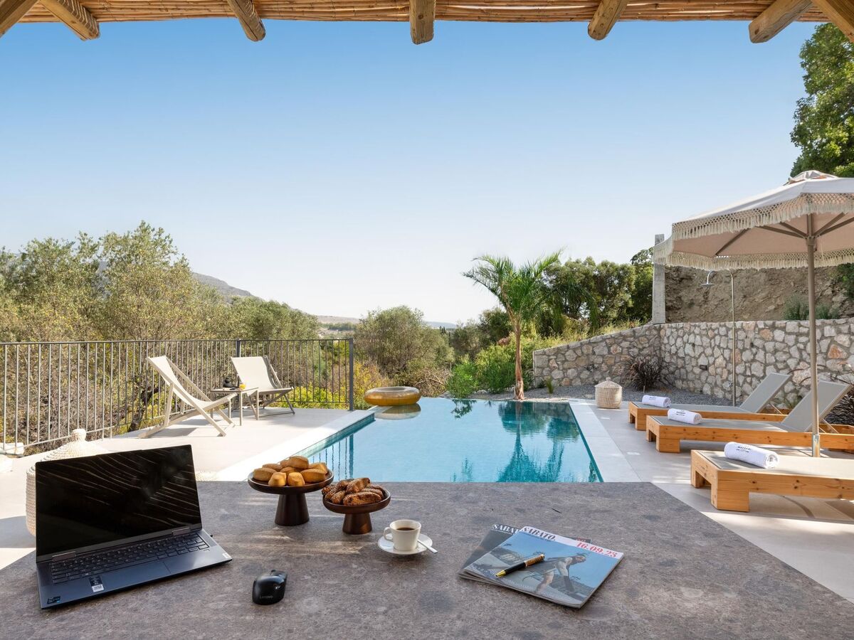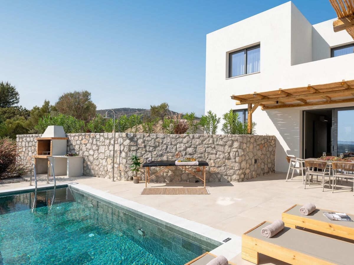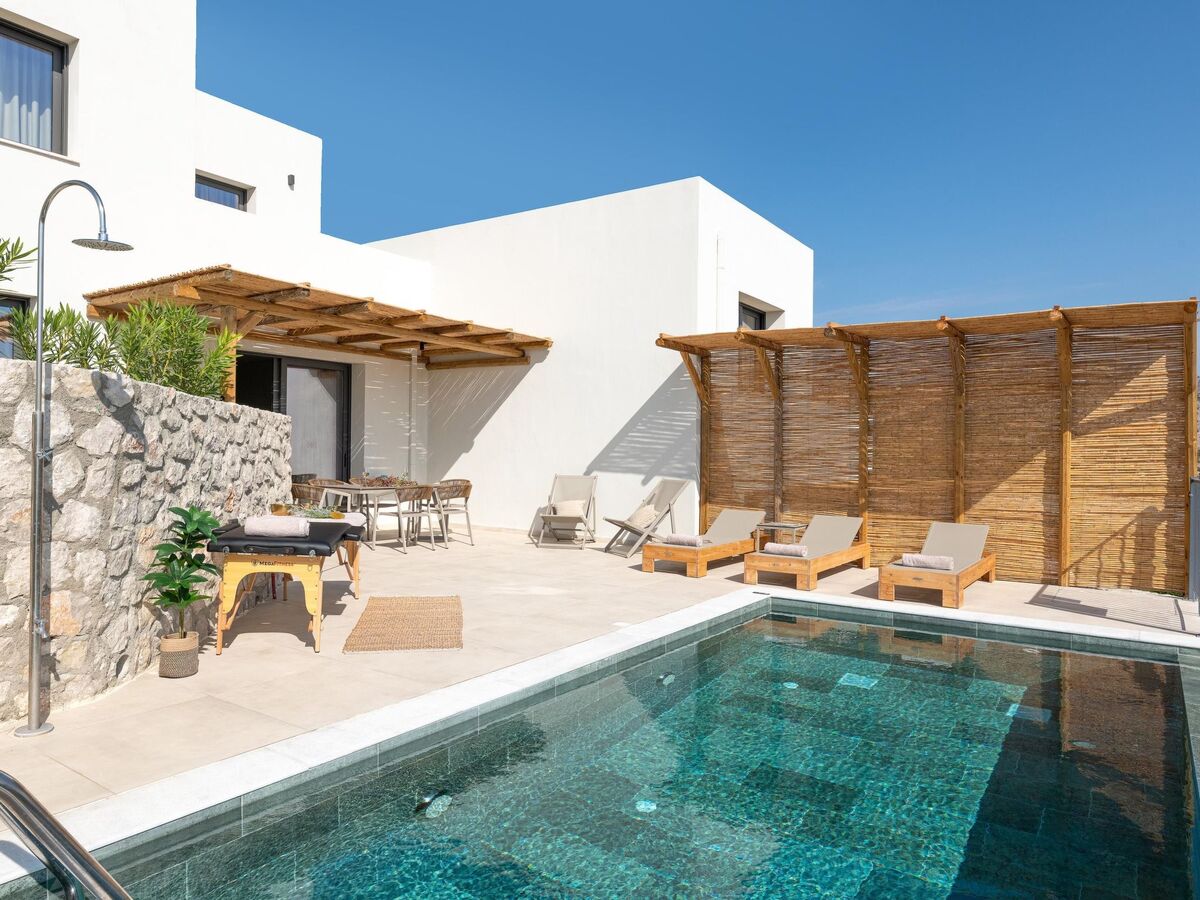 Outdoors, there’s a private swimming pool with sunbeds and a seating area where you can relax under the rays of the Aegean sun.